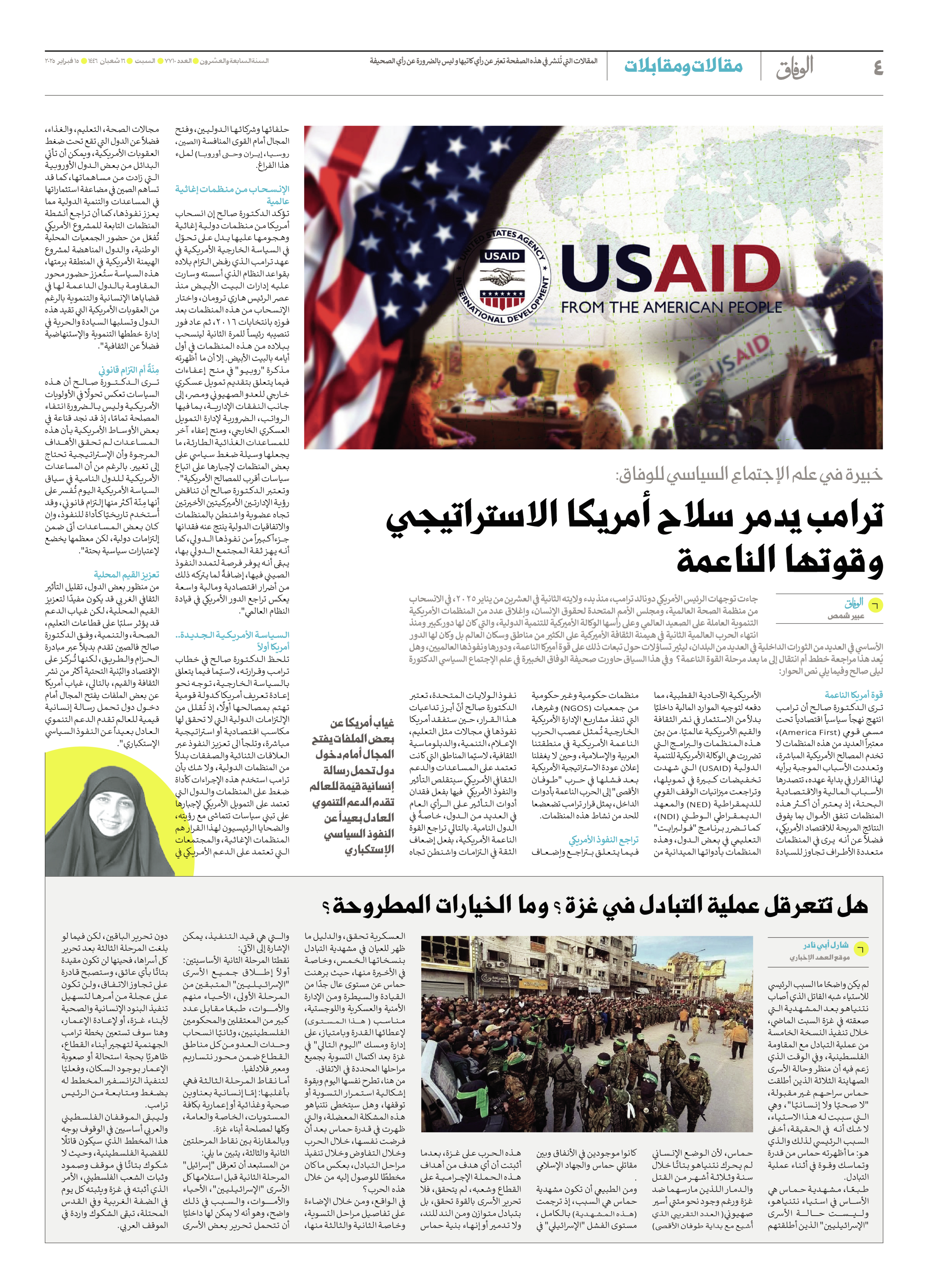صحیفة ایران الدولیة الوفاق - العدد سبعة آلاف وسبعمائة وعشرة - ١٥ فبراير ٢٠٢٥ - الصفحة ٤