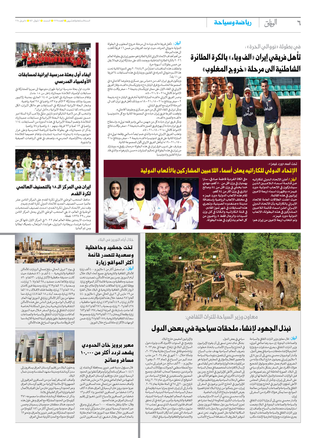 تأهل فريقي إيران «الف وباء» بالكرة الطائرة الشاطئية الى مرحلة «خروج المغلوب»