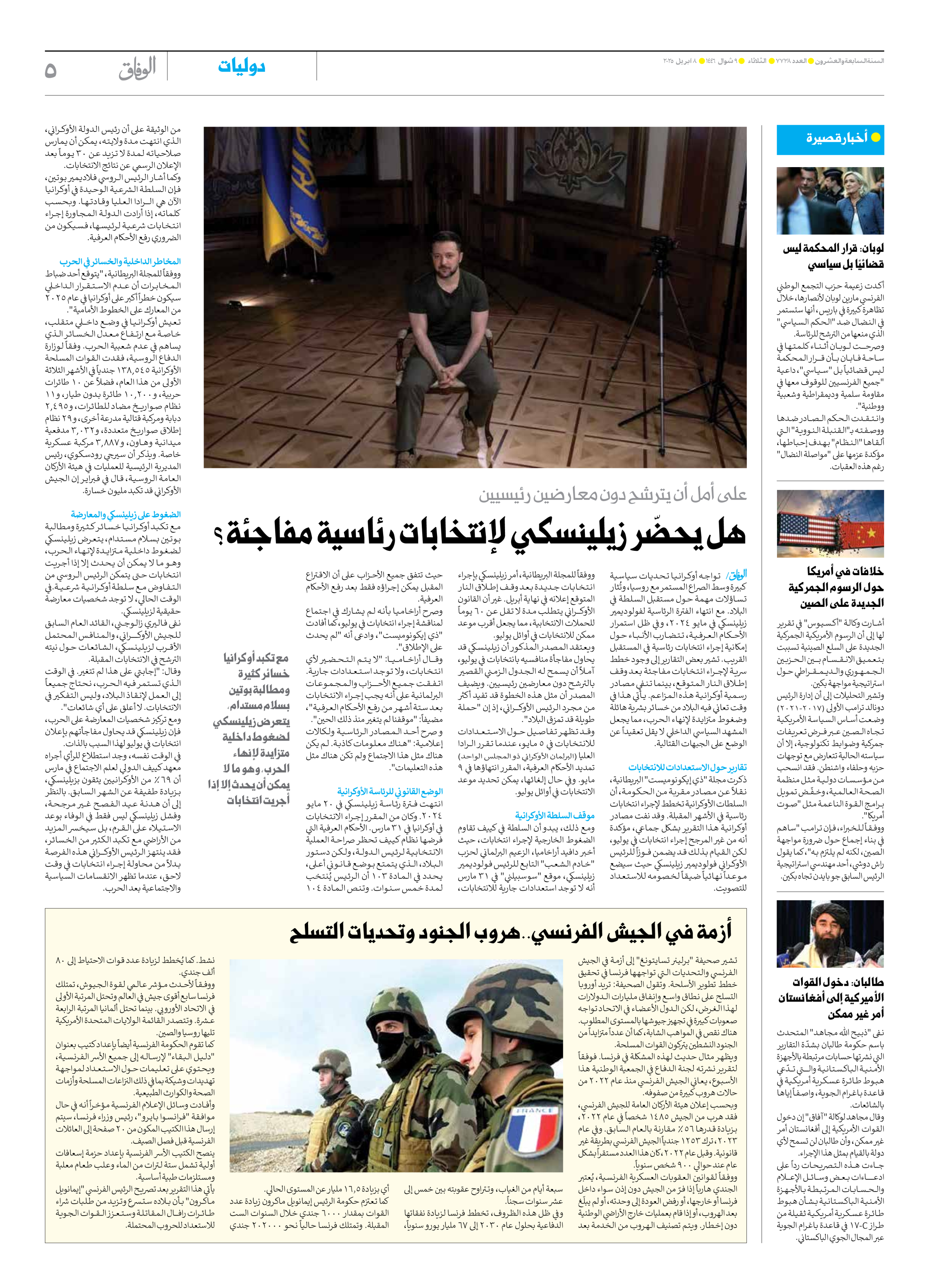 العدد سبعة آلاف وسبعمائة وثمانية وثلاثون - ٠٨ أبريل ٢٠٢٥