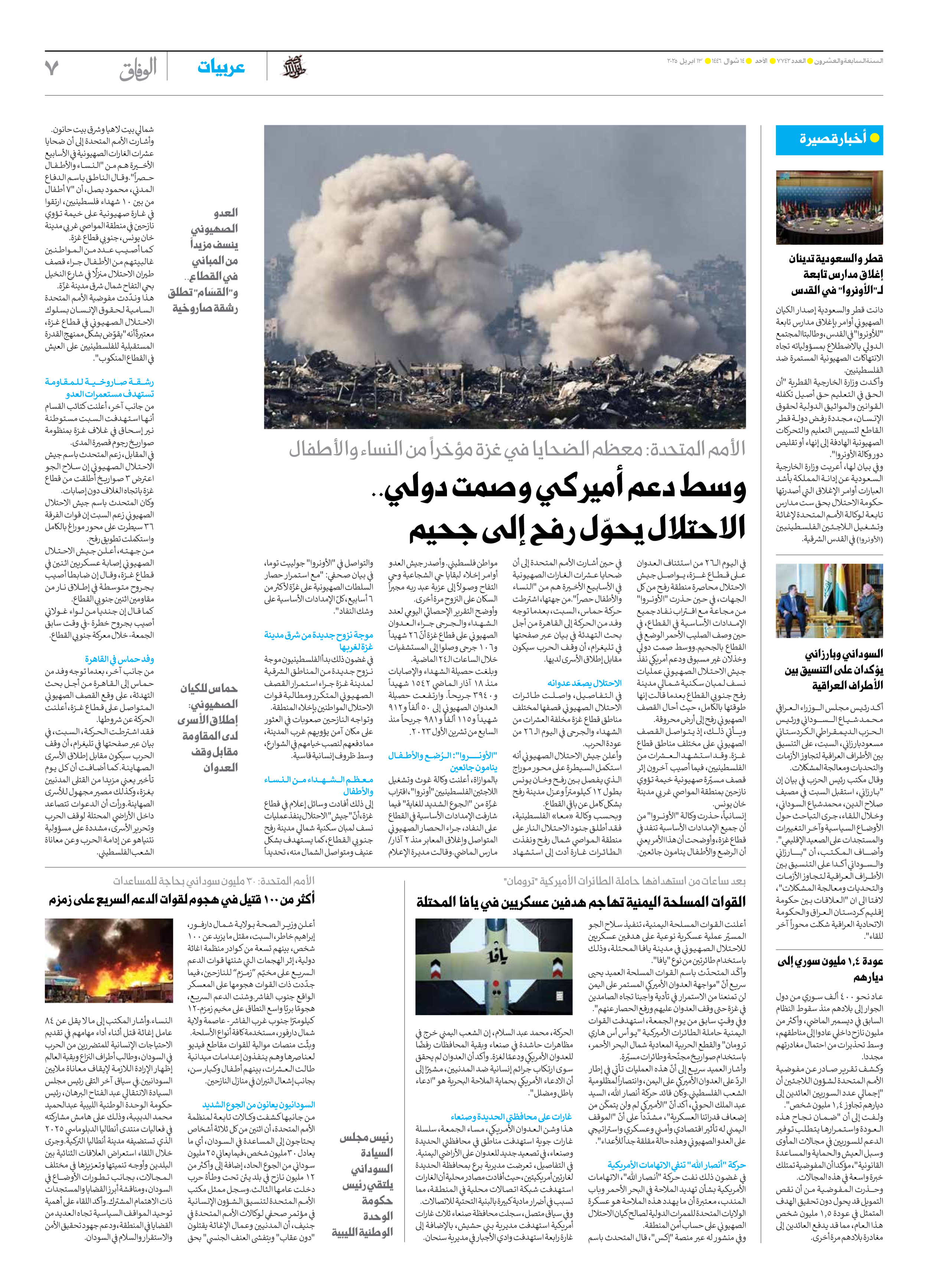 العدد سبعة آلاف وسبعمائة واثنان وأربعون - ١٣ أبريل ٢٠٢٥