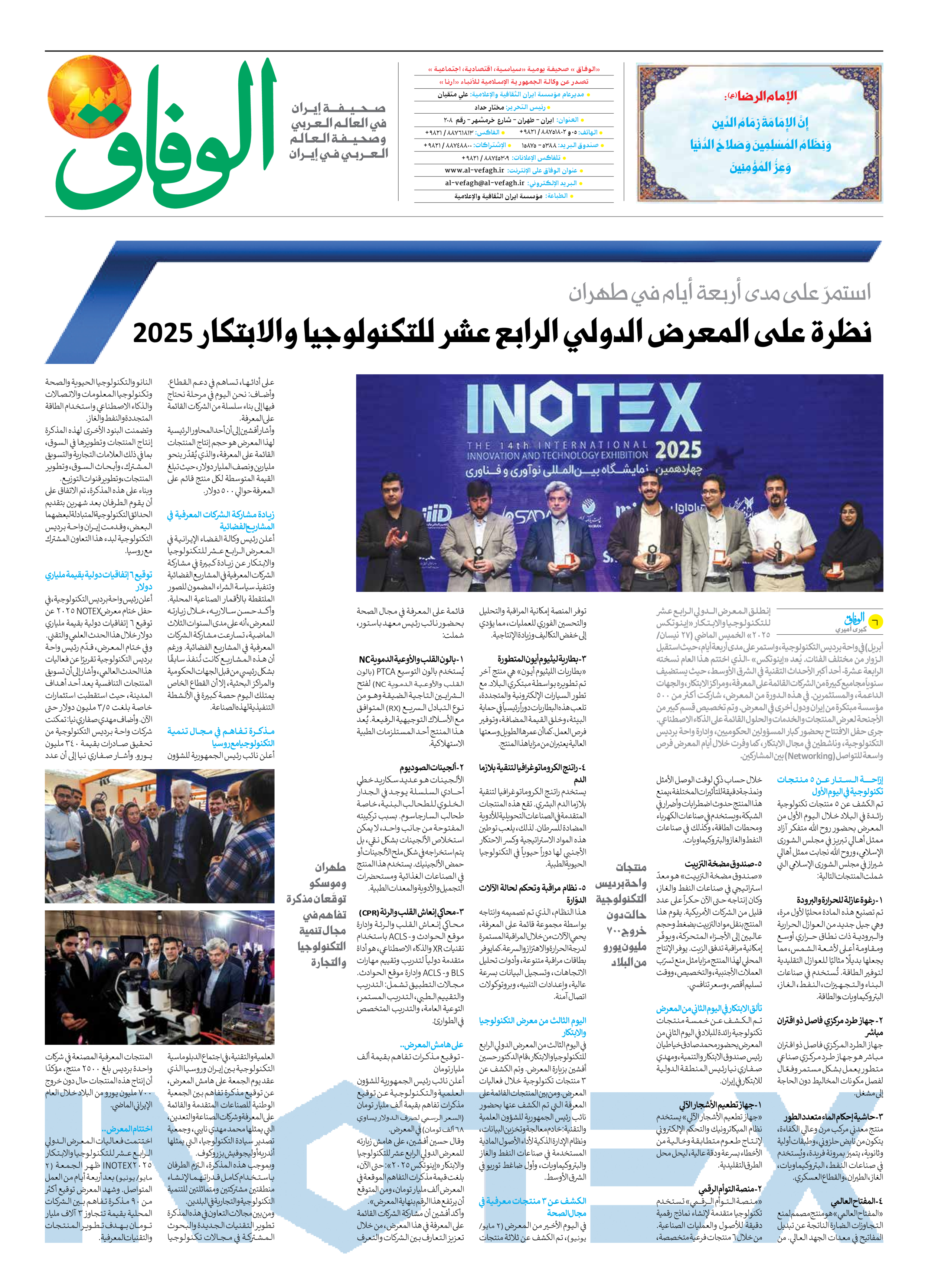 صحیفة ایران الدولیة الوفاق - العدد سبعة آلاف وسبعمائة وتسعة وخمسون - ٠٤ مايو ٢٠٢٥ - الصفحة ۸