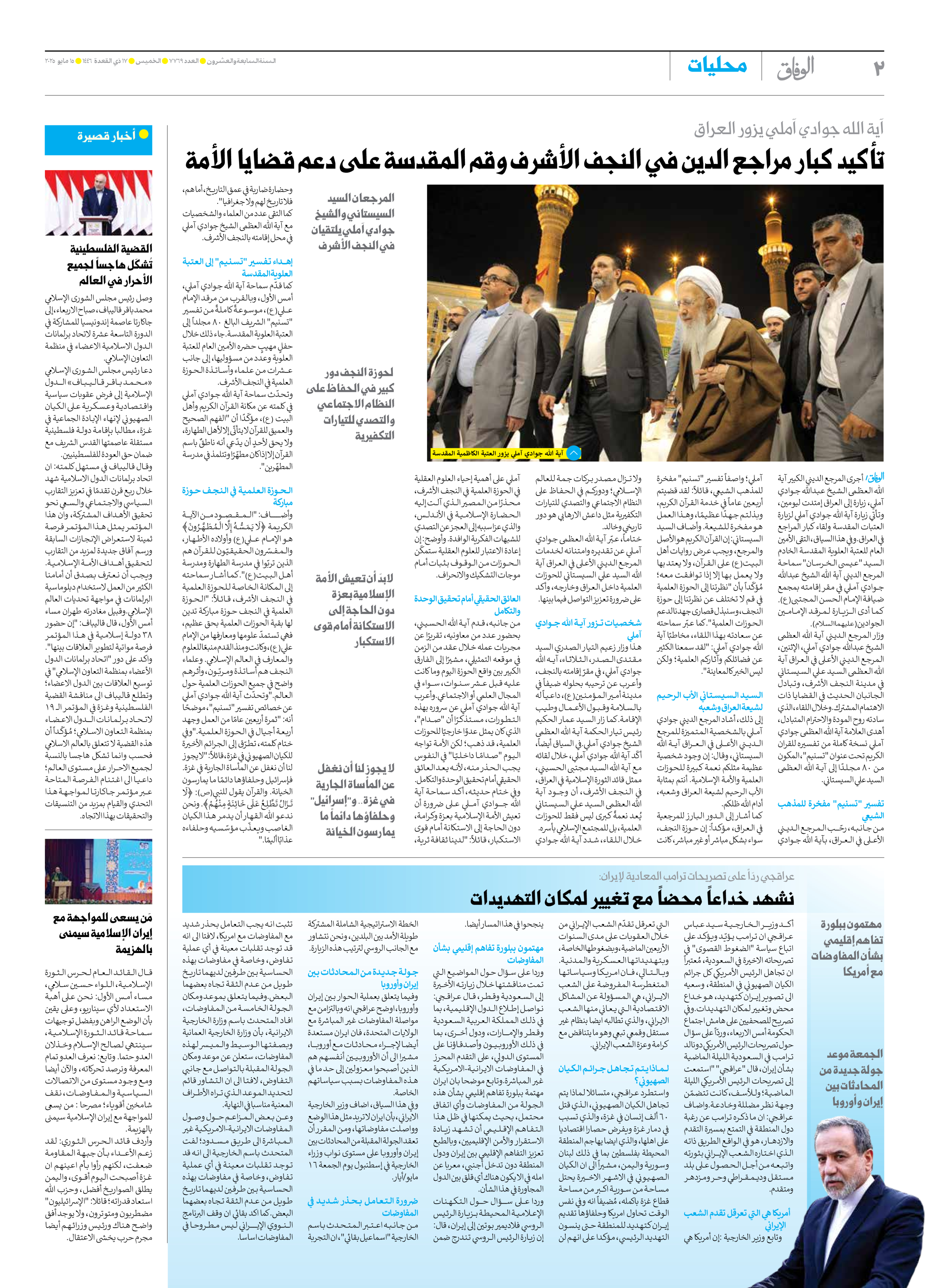 صحیفة ایران الدولیة الوفاق - العدد سبعة آلاف وسبعمائة وتسعة وستون - ١٥ مايو ٢٠٢٥ - الصفحة ۲
