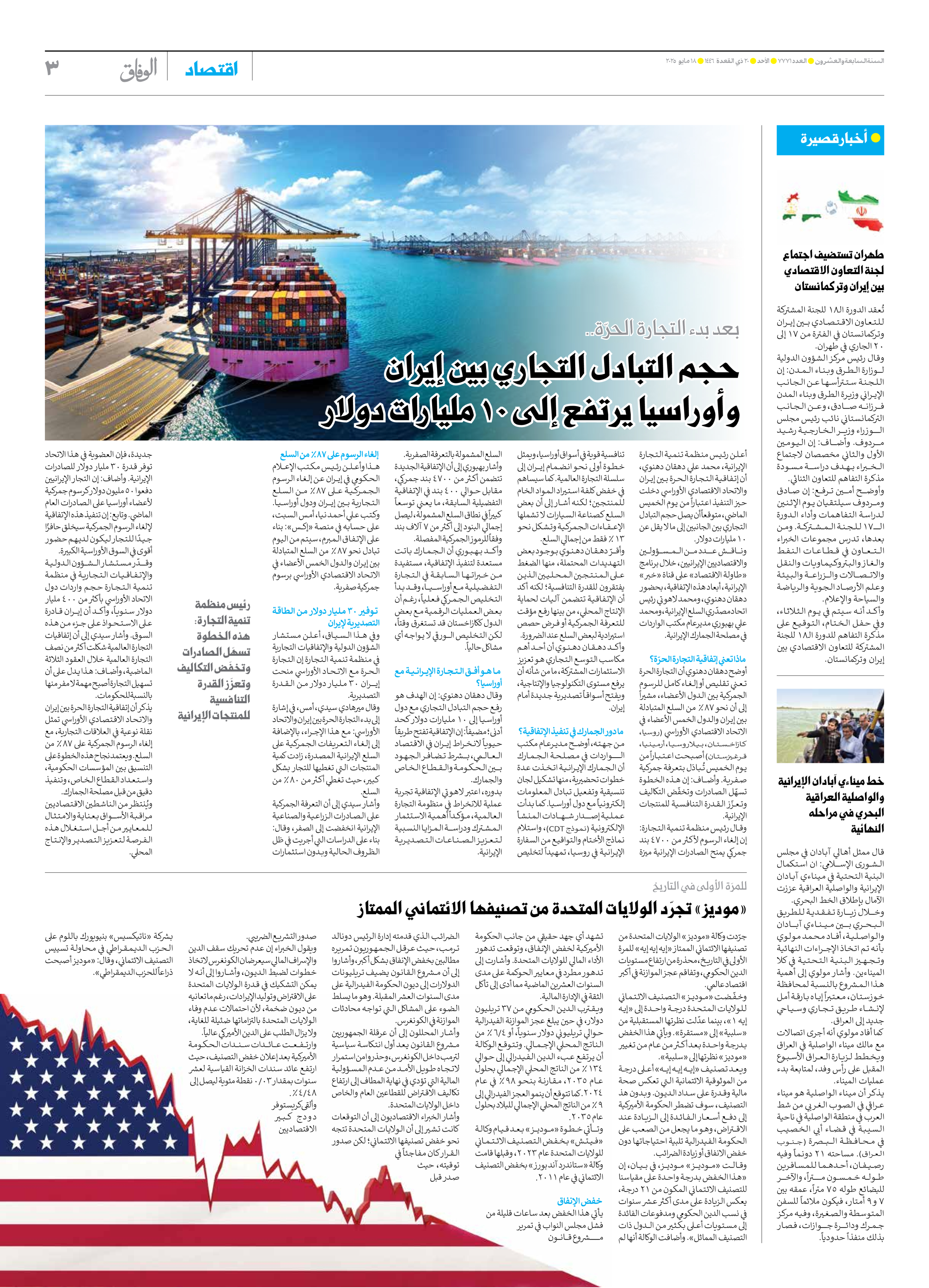 صحیفة ایران الدولیة الوفاق - العدد سبعة آلاف وسبعمائة وواحد وسبعون - ١٨ مايو ٢٠٢٥ - الصفحة ۳