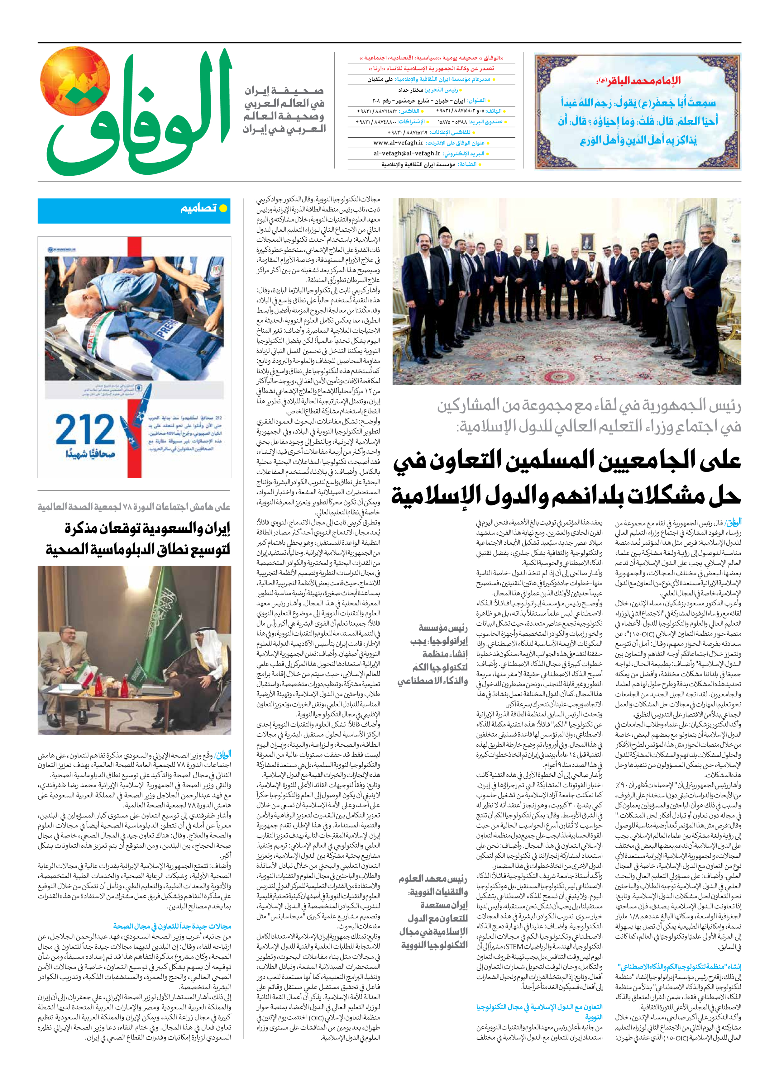 صحیفة ایران الدولیة الوفاق - العدد سبعة آلاف وسبعمائة وأربعة وسبعون - ٢١ مايو ٢٠٢٥ - الصفحة ۸