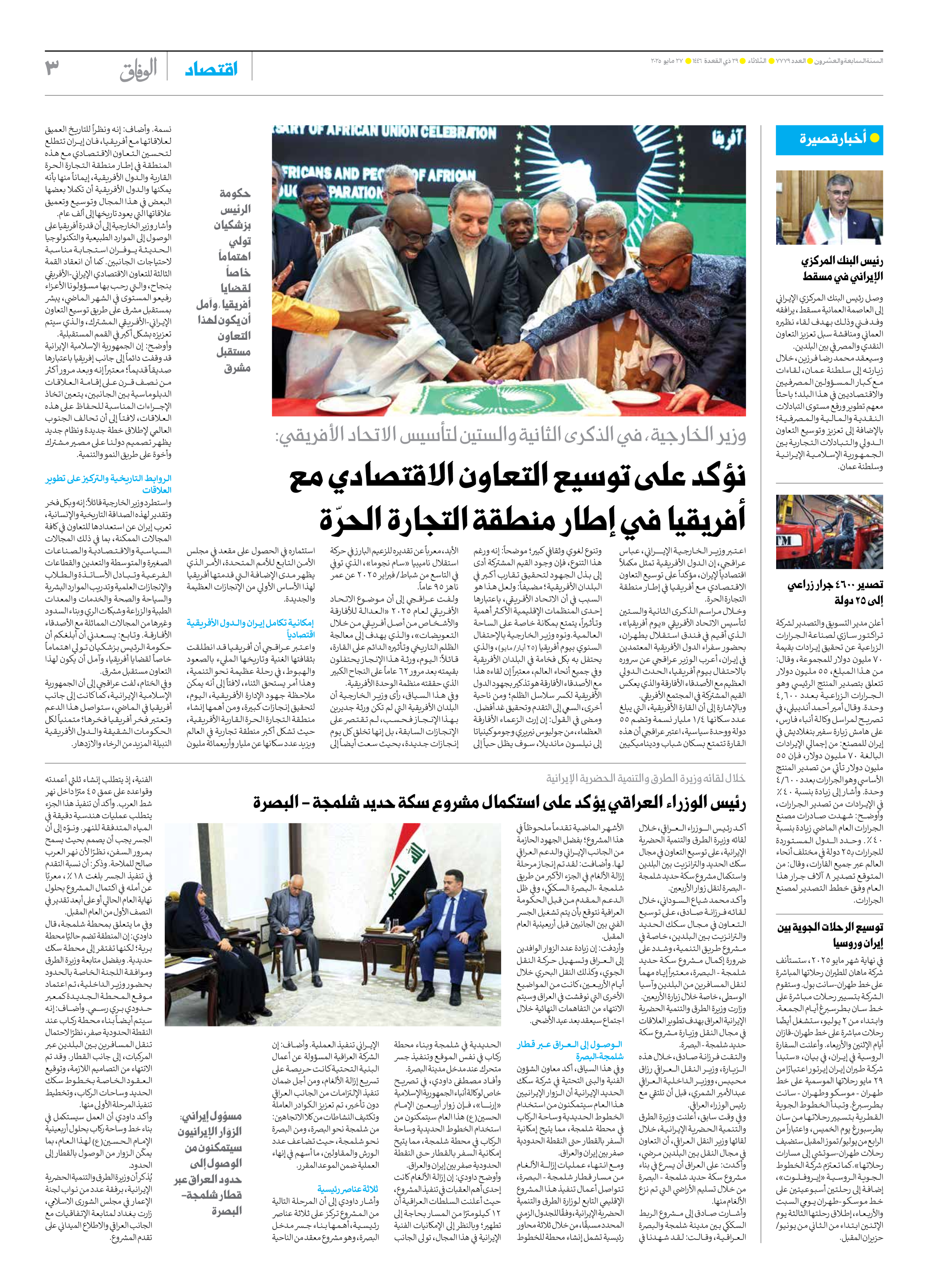 صحیفة ایران الدولیة الوفاق - العدد سبعة آلاف وسبعمائة وتسعة وسبعون - ٢٧ مايو ٢٠٢٥ - الصفحة ۳