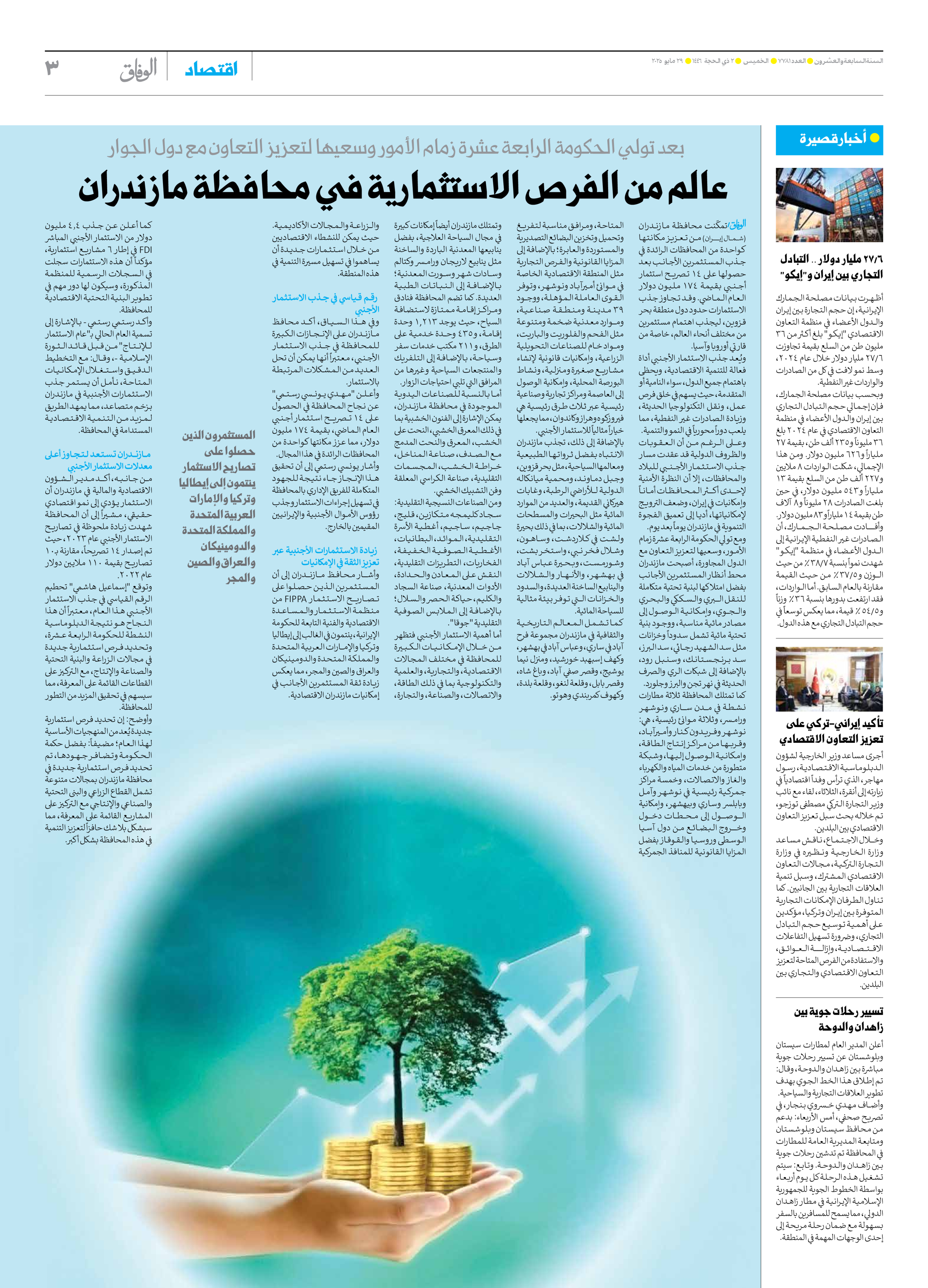 صحیفة ایران الدولیة الوفاق - العدد سبعة آلاف وسبعمائة وواحد وثمانون - ٢٩ مايو ٢٠٢٥ - الصفحة ۳