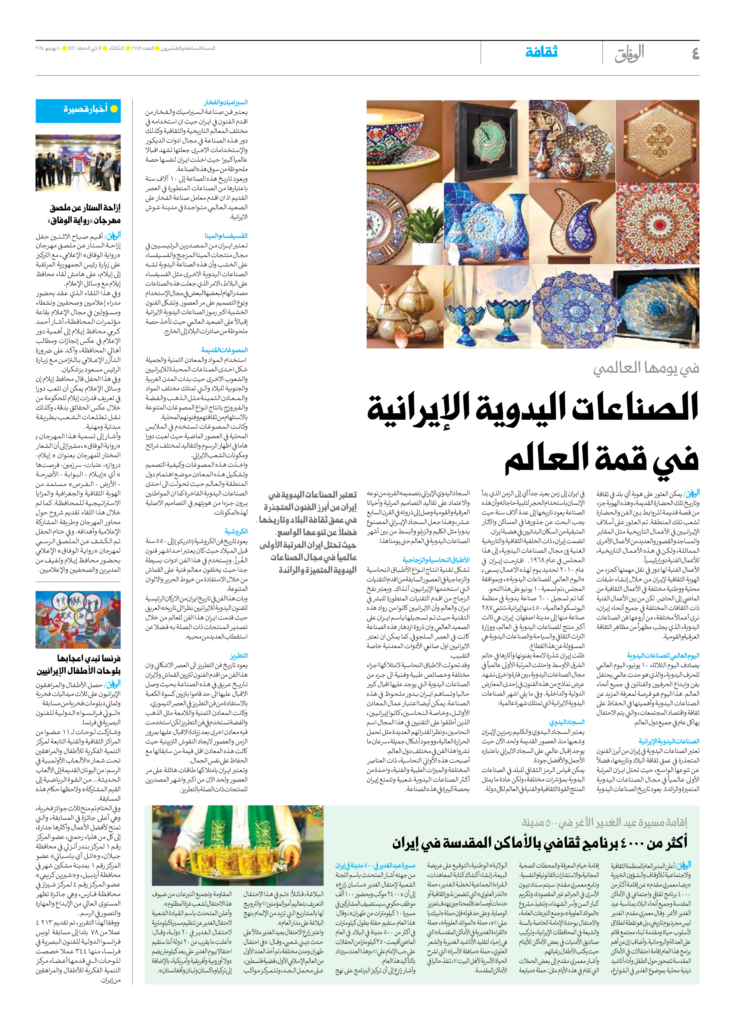 صحیفة ایران الدولیة الوفاق - العدد سبعة آلاف وسبعمائة وتسعة وثمانون - ١٠ يونيو ٢٠٢٥ - الصفحة ٤