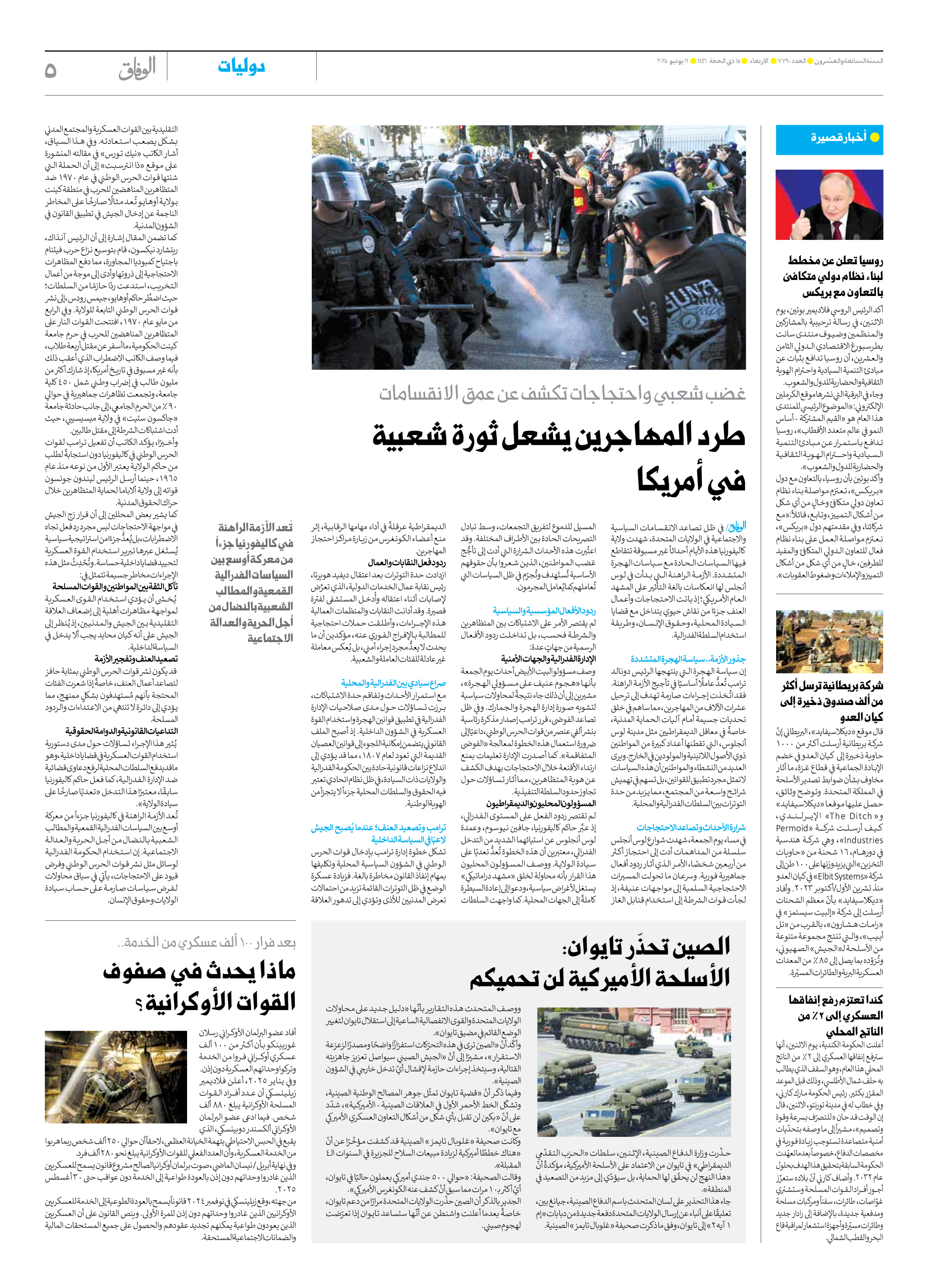 صحیفة ایران الدولیة الوفاق - العدد سبعة آلاف وسبعمائة وتسعون - ١١ يونيو ٢٠٢٥ - الصفحة ٥