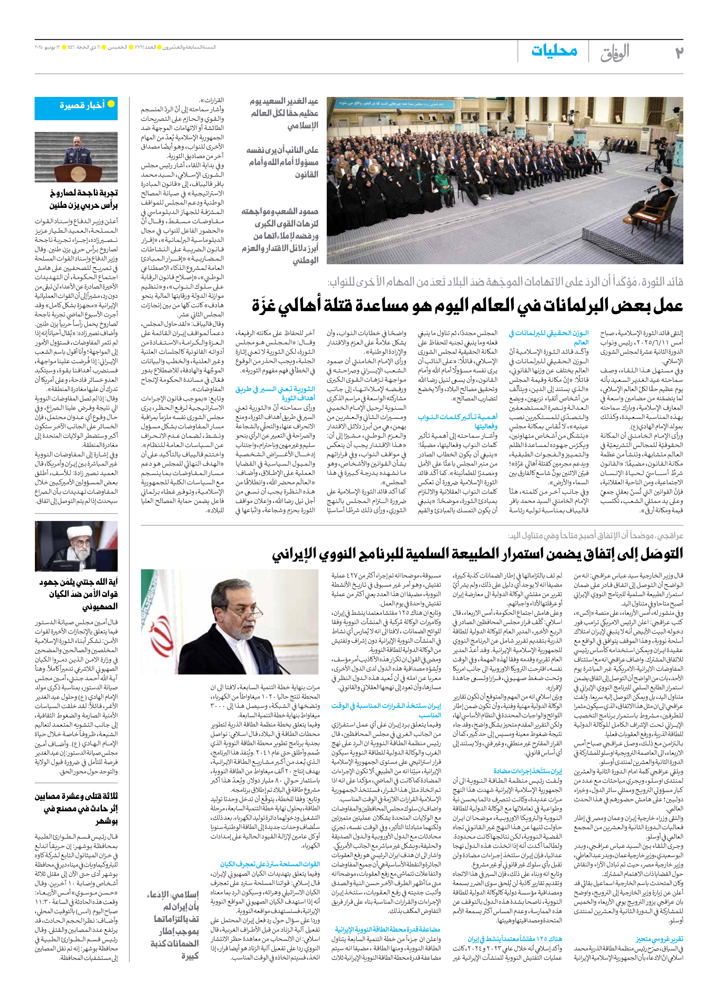 صحیفة ایران الدولیة الوفاق - العدد سبعة آلاف وسبعمائة وواحد وتسعون - ١٢ يونيو ٢٠٢٥ - الصفحة ۲