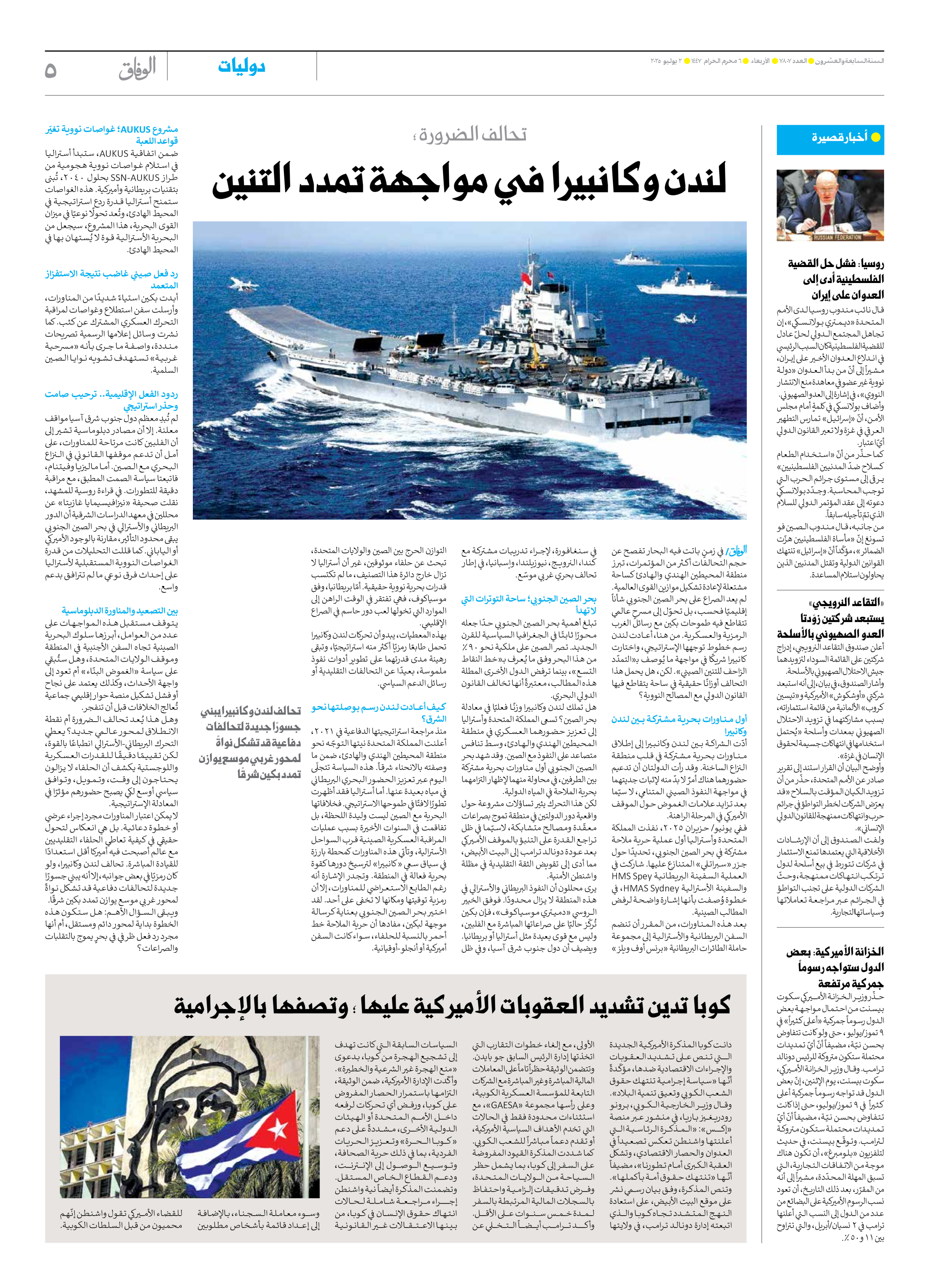 صحیفة ایران الدولیة الوفاق - العدد سبعة آلاف وثمانمائة وسبعة - ٠٢ يوليو ٢٠٢٥ - الصفحة ٥