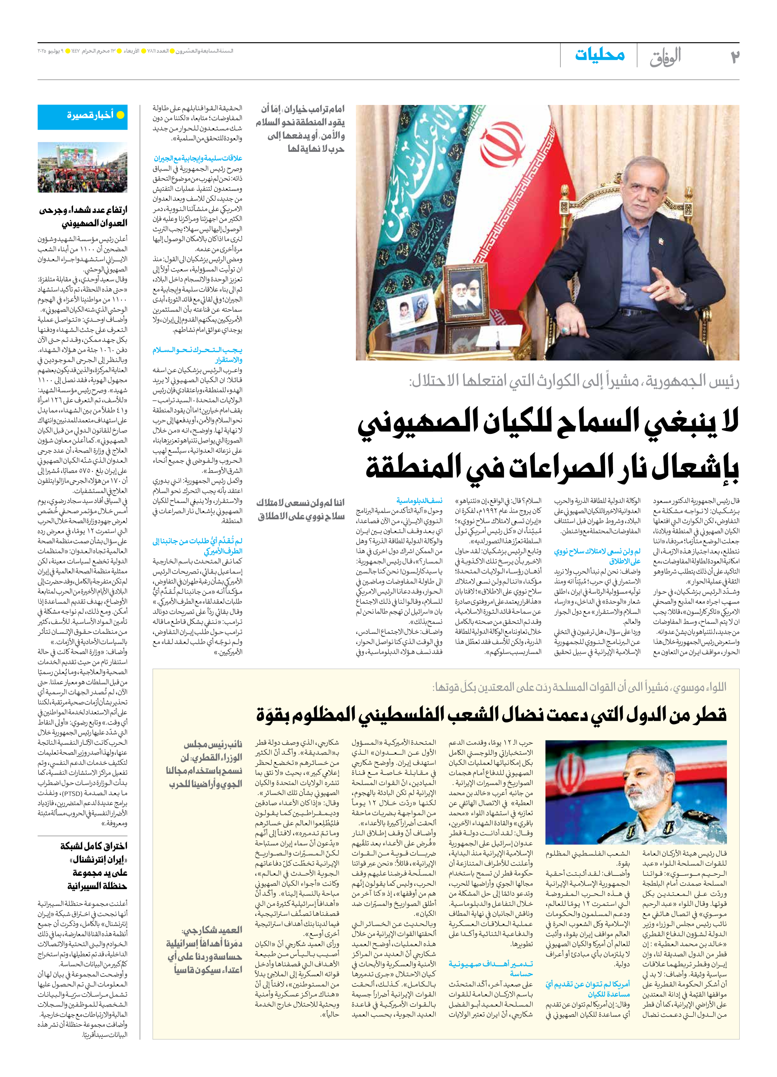 صحیفة ایران الدولیة الوفاق - العدد سبعة آلاف وثمانمائة وأحد عشر - ٠٩ يوليو ٢٠٢٥ - الصفحة ۲