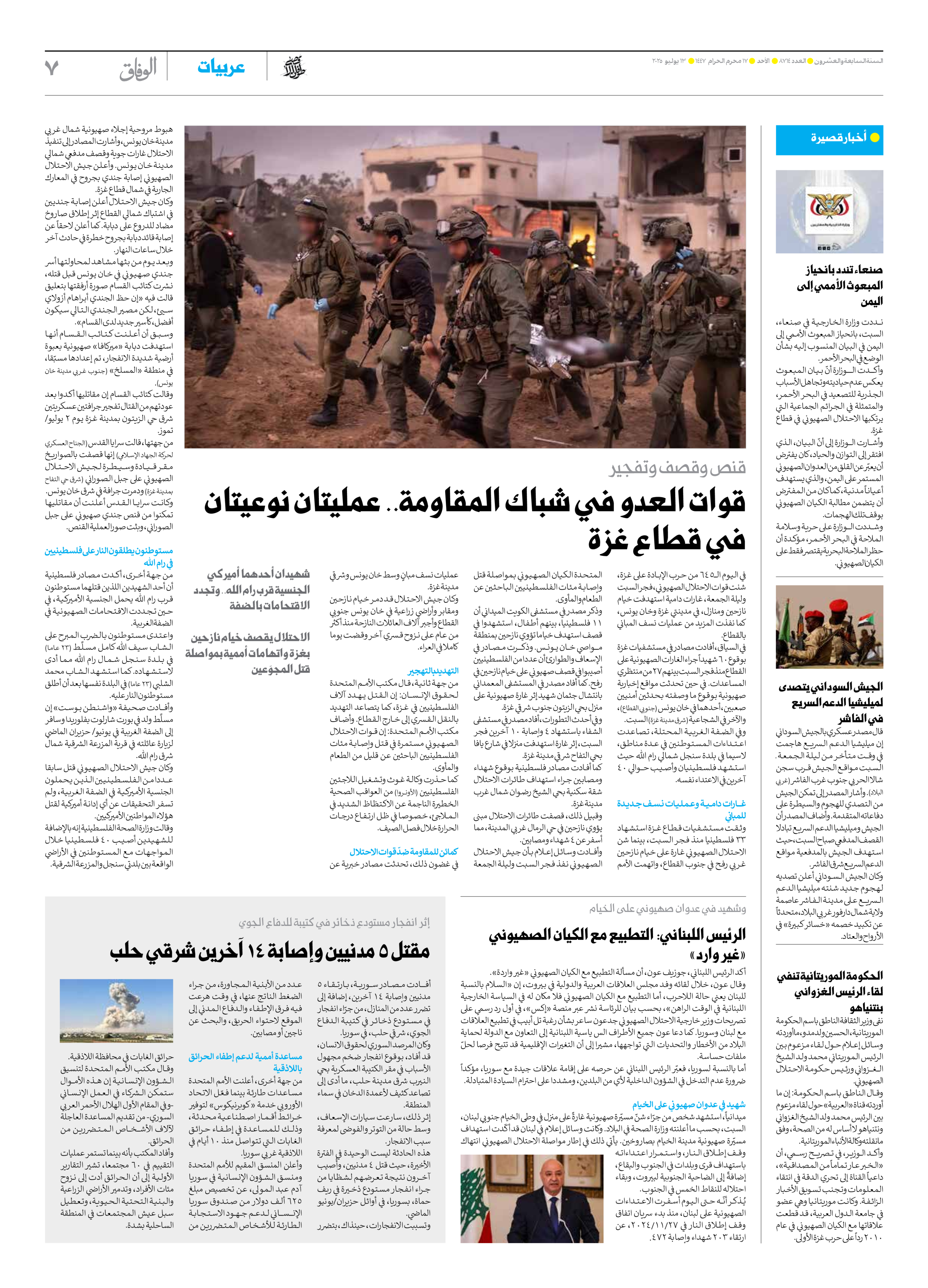 العدد سبعة آلاف وثمانمائة وأربعة عشر - ١٣ يوليو ٢٠٢٥