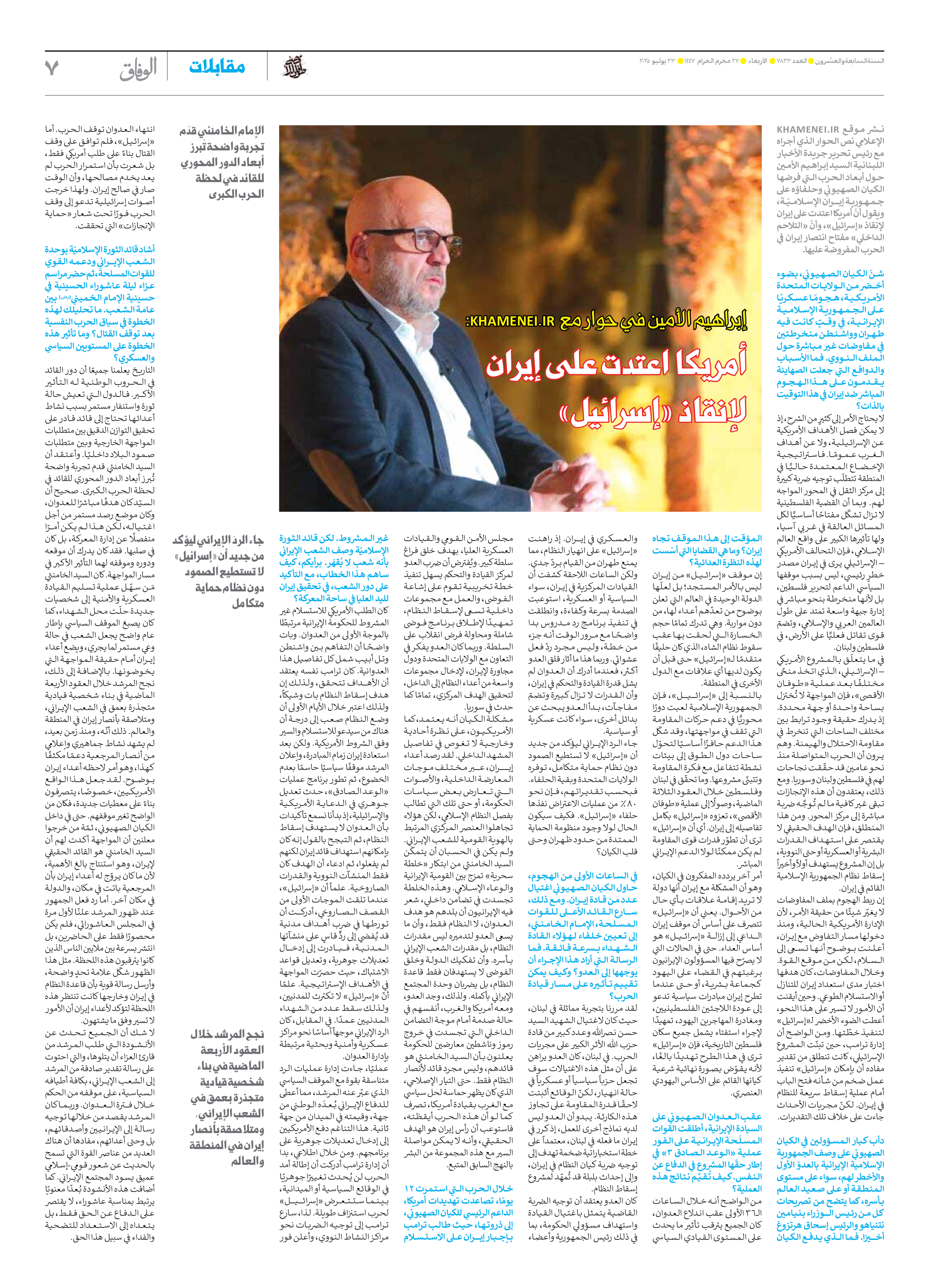 العدد سبعة آلاف وثمانمائة وثلاثة وعشرون - ٢٣ يوليو ٢٠٢٥
