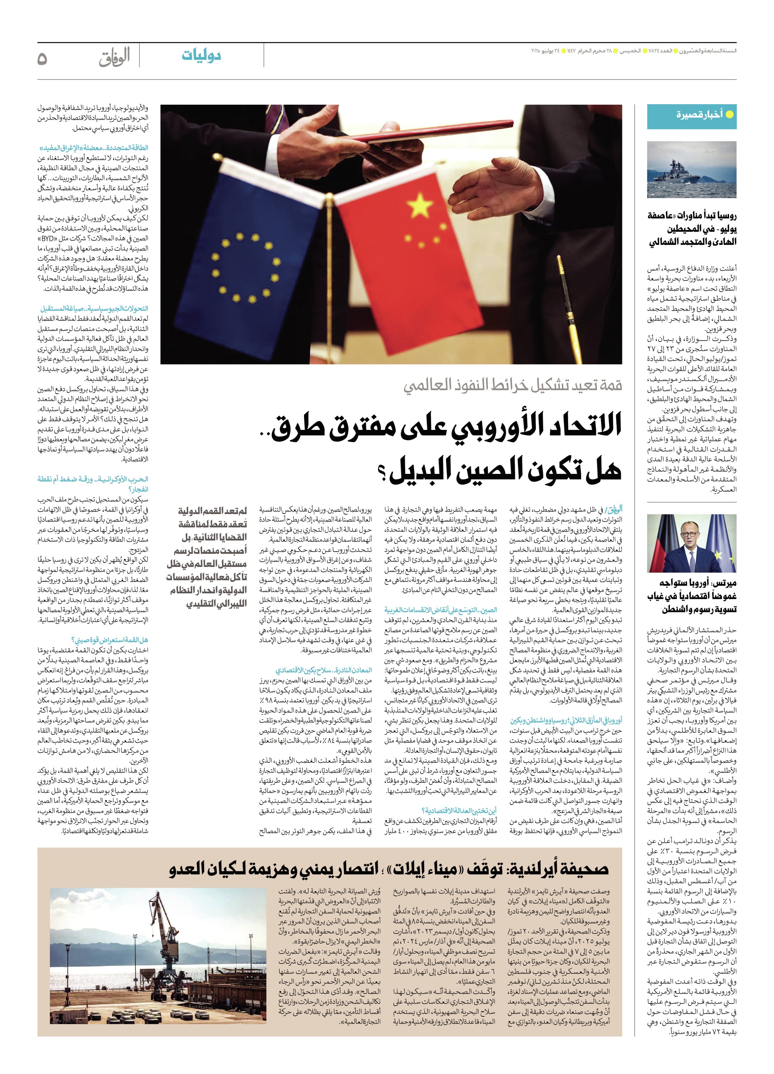 صحیفة ایران الدولیة الوفاق - العدد سبعة آلاف وثمانمائة وأربعة وعشرون - ٢٤ يوليو ٢٠٢٥ - الصفحة ٥