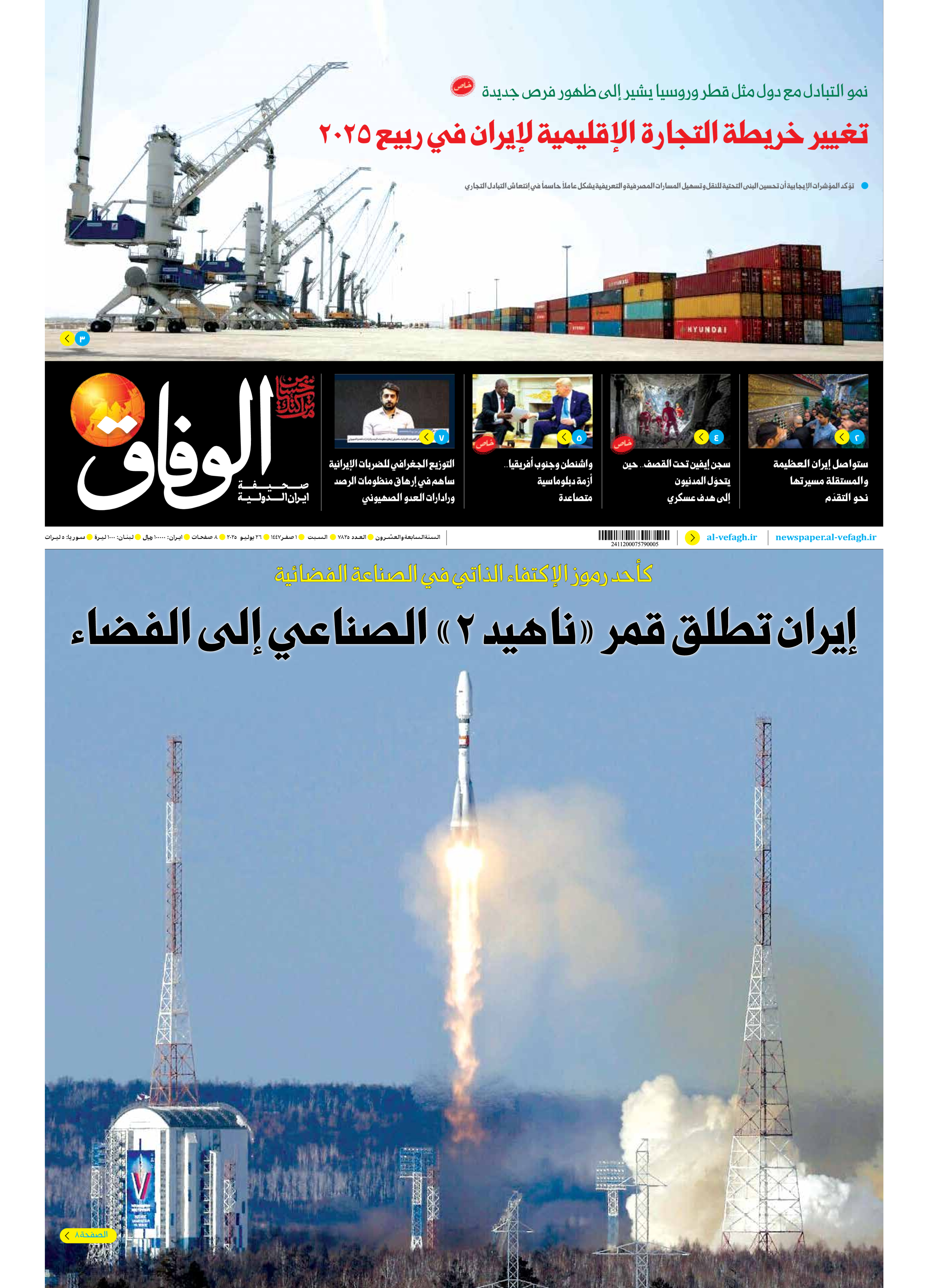صحیفة ایران الدولیة الوفاق - العدد سبعة آلاف وثمانمائة وخمسة وعشرون - ٢٦ يوليو ٢٠٢٥