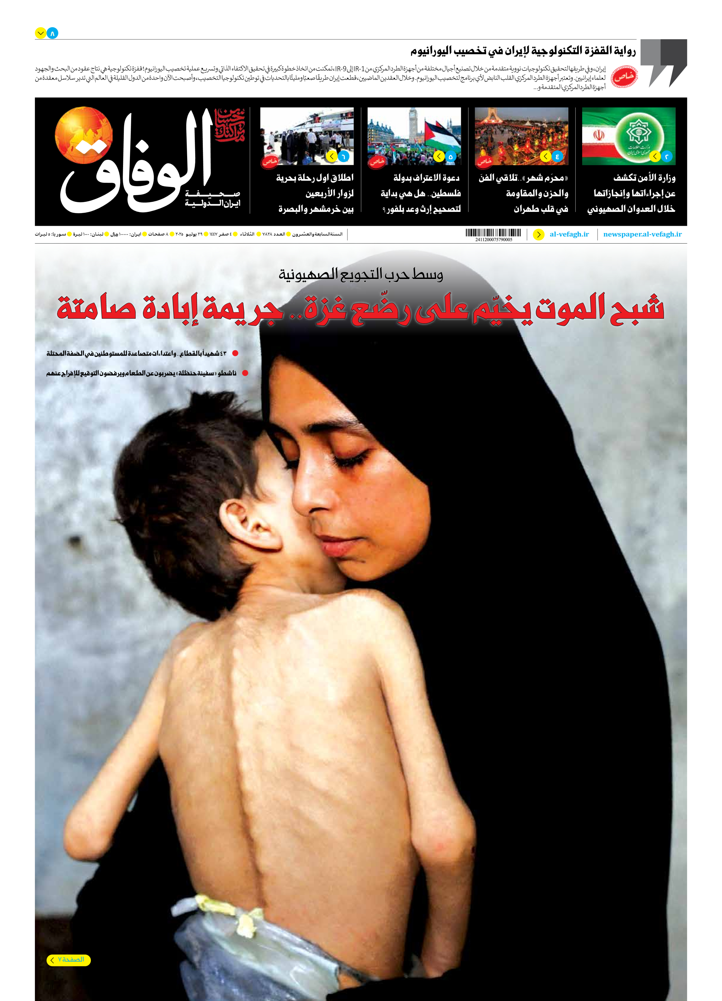 صحیفة ایران الدولیة الوفاق - العدد سبعة آلاف وثمانمائة وثمانية وعشرون - ٢٩ يوليو ٢٠٢٥