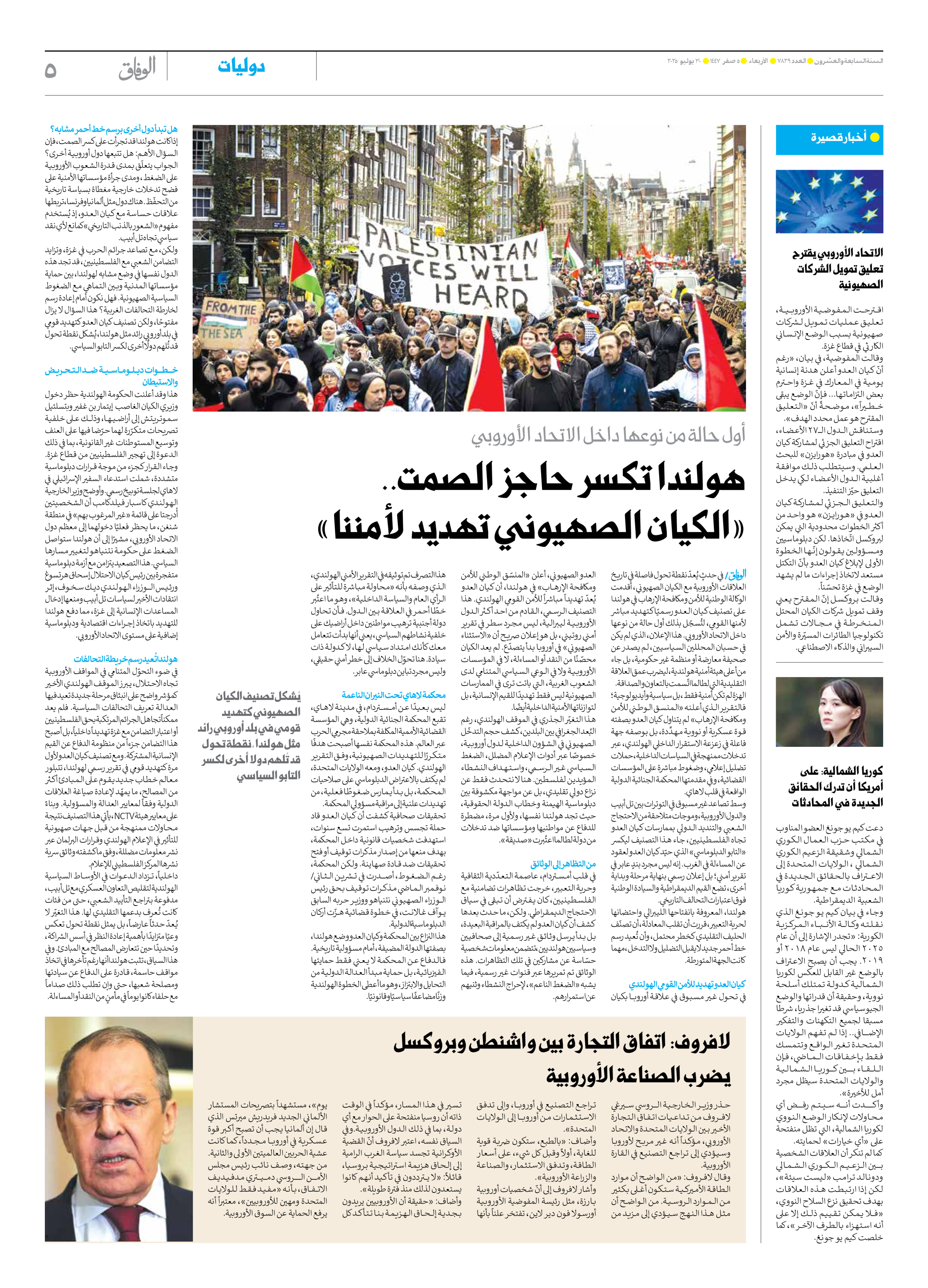 صحیفة ایران الدولیة الوفاق - العدد سبعة آلاف وثمانمائة وتسعة وعشرون - ٣٠ يوليو ٢٠٢٥ - الصفحة ٥
