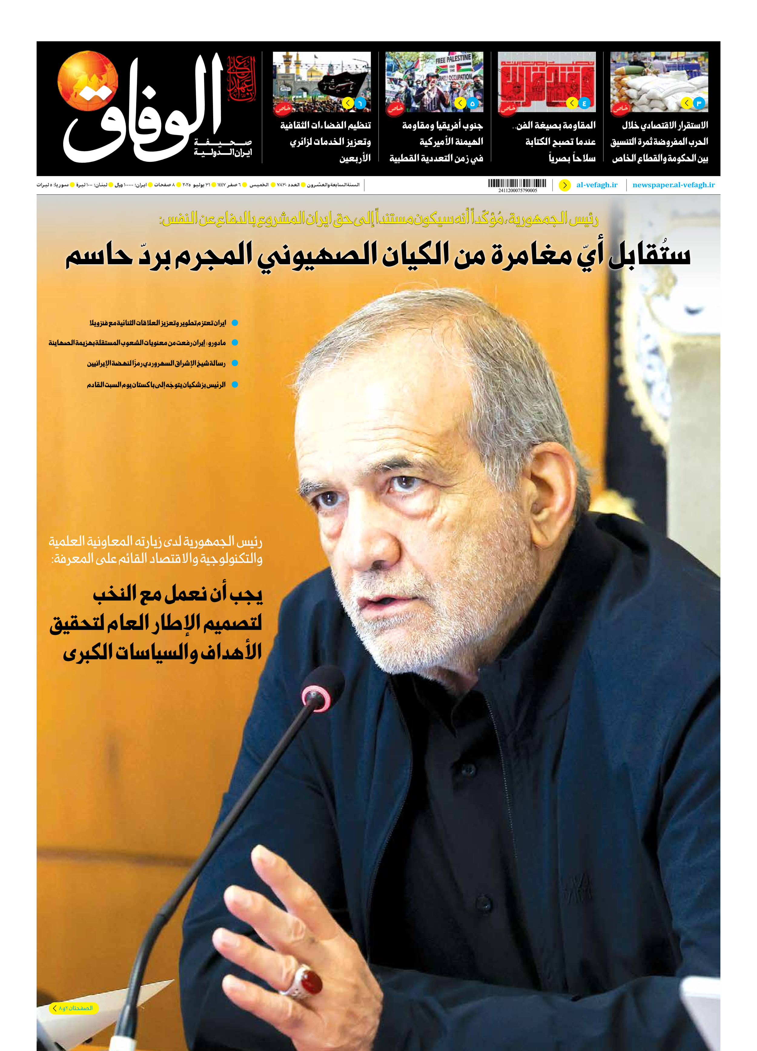 صحیفة ایران الدولیة الوفاق - العدد سبعة آلاف وثمانمائة وثلاثون - ٣١ يوليو ٢٠٢٥