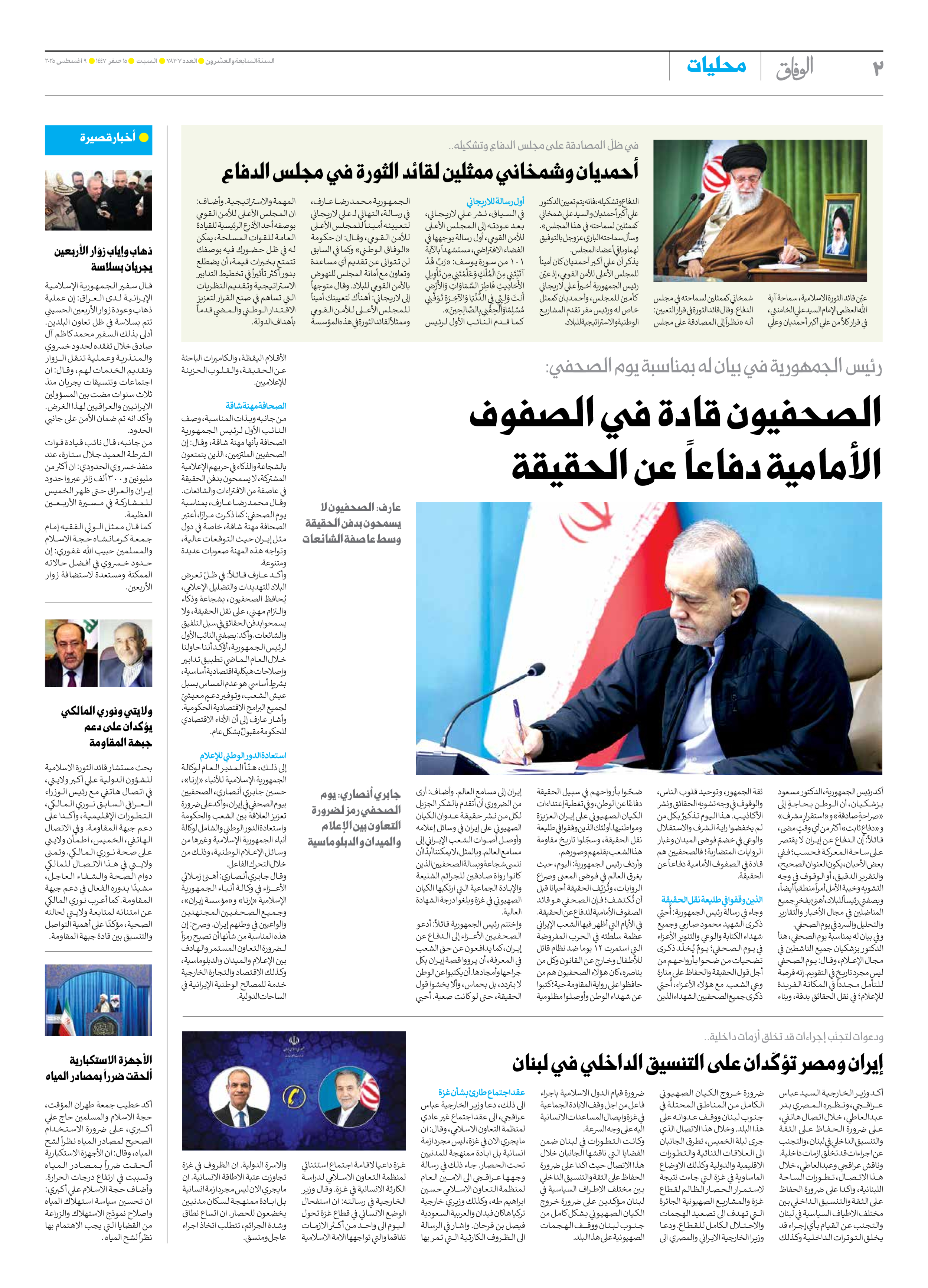 صحیفة ایران الدولیة الوفاق - العدد سبعة آلاف وثمانمائة وسبعة وثلاثون - ٠٩ أغسطس ٢٠٢٥ - الصفحة ۲