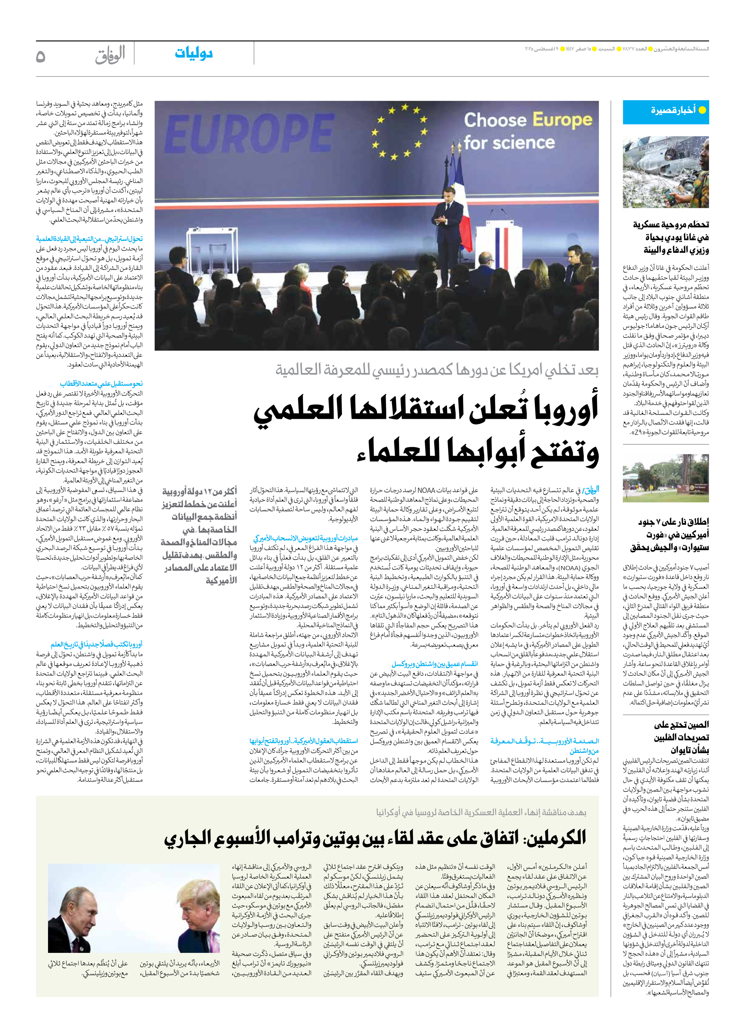 العدد سبعة آلاف وثمانمائة وسبعة وثلاثون - ٠٩ أغسطس ٢٠٢٥