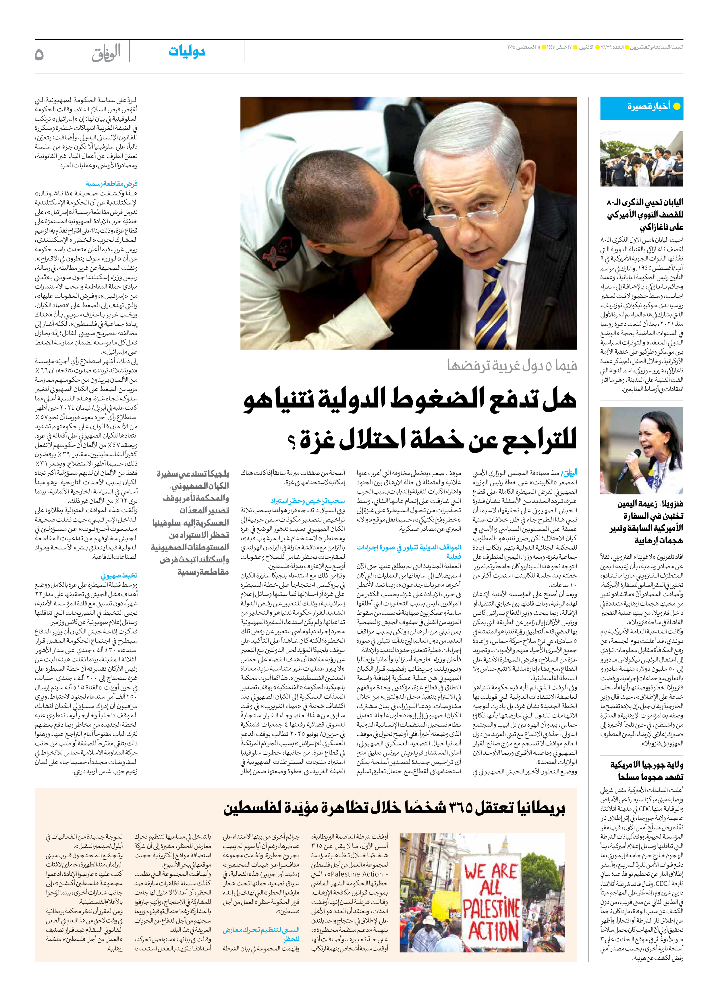 صحیفة ایران الدولیة الوفاق - العدد سبعة آلاف وثمانمائة وتسعة وثلاثون - ١١ أغسطس ٢٠٢٥ - الصفحة ٥