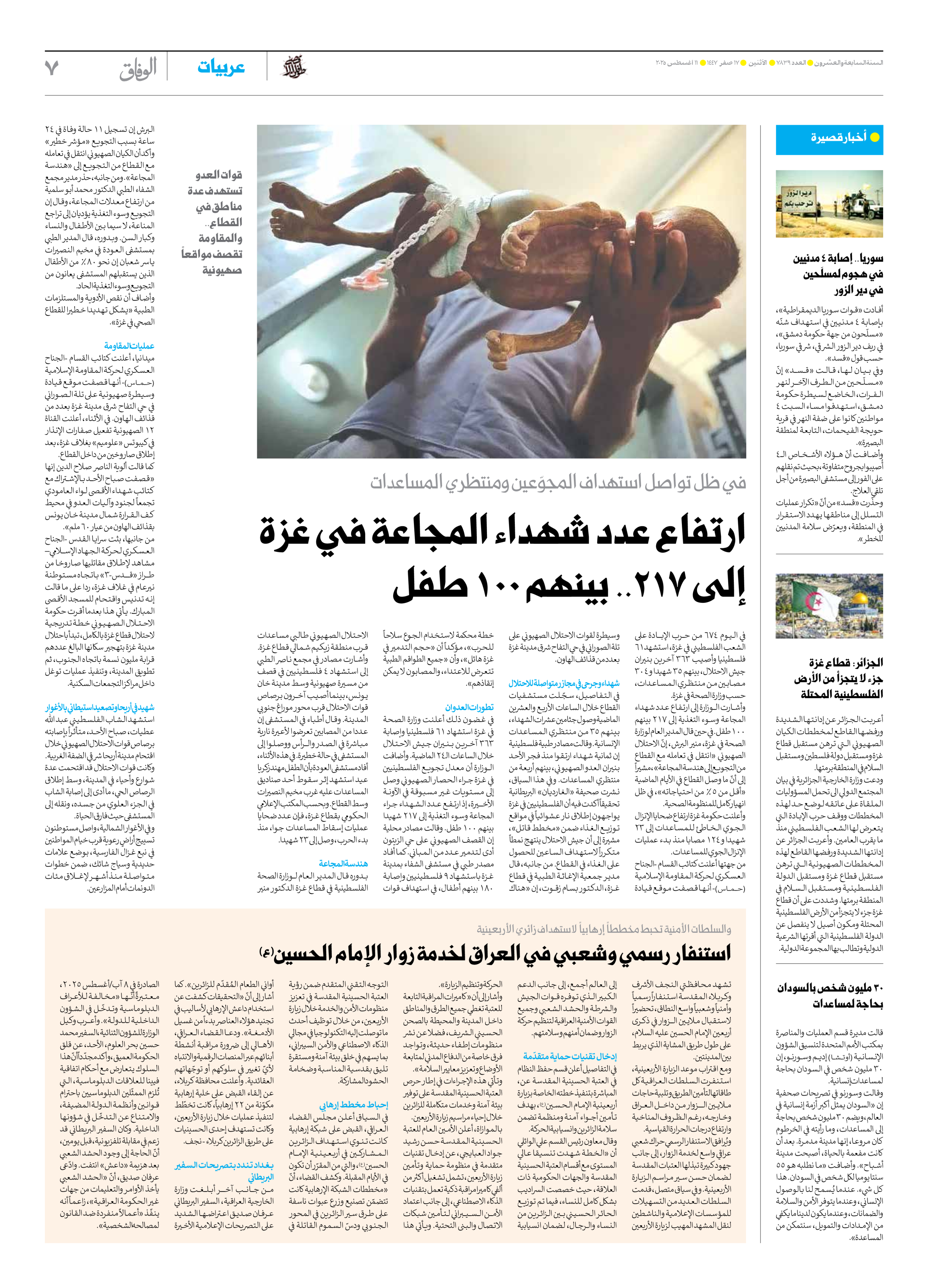 العدد سبعة آلاف وثمانمائة وتسعة وثلاثون - ١١ أغسطس ٢٠٢٥