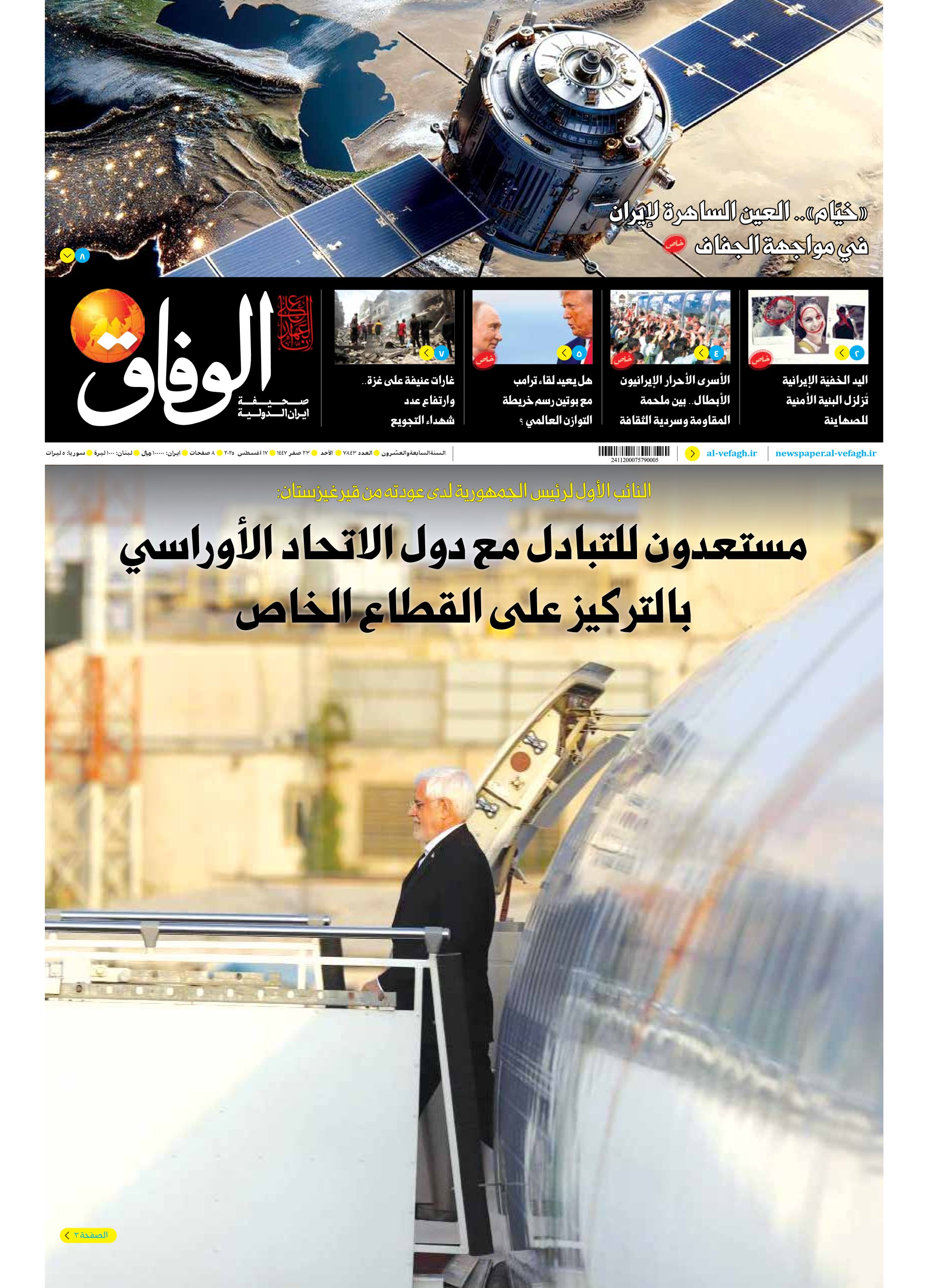 صحیفة ایران الدولیة الوفاق - العدد سبعة آلاف وثمانمائة وثلاثة وأربعون - ١٧ أغسطس ٢٠٢٥