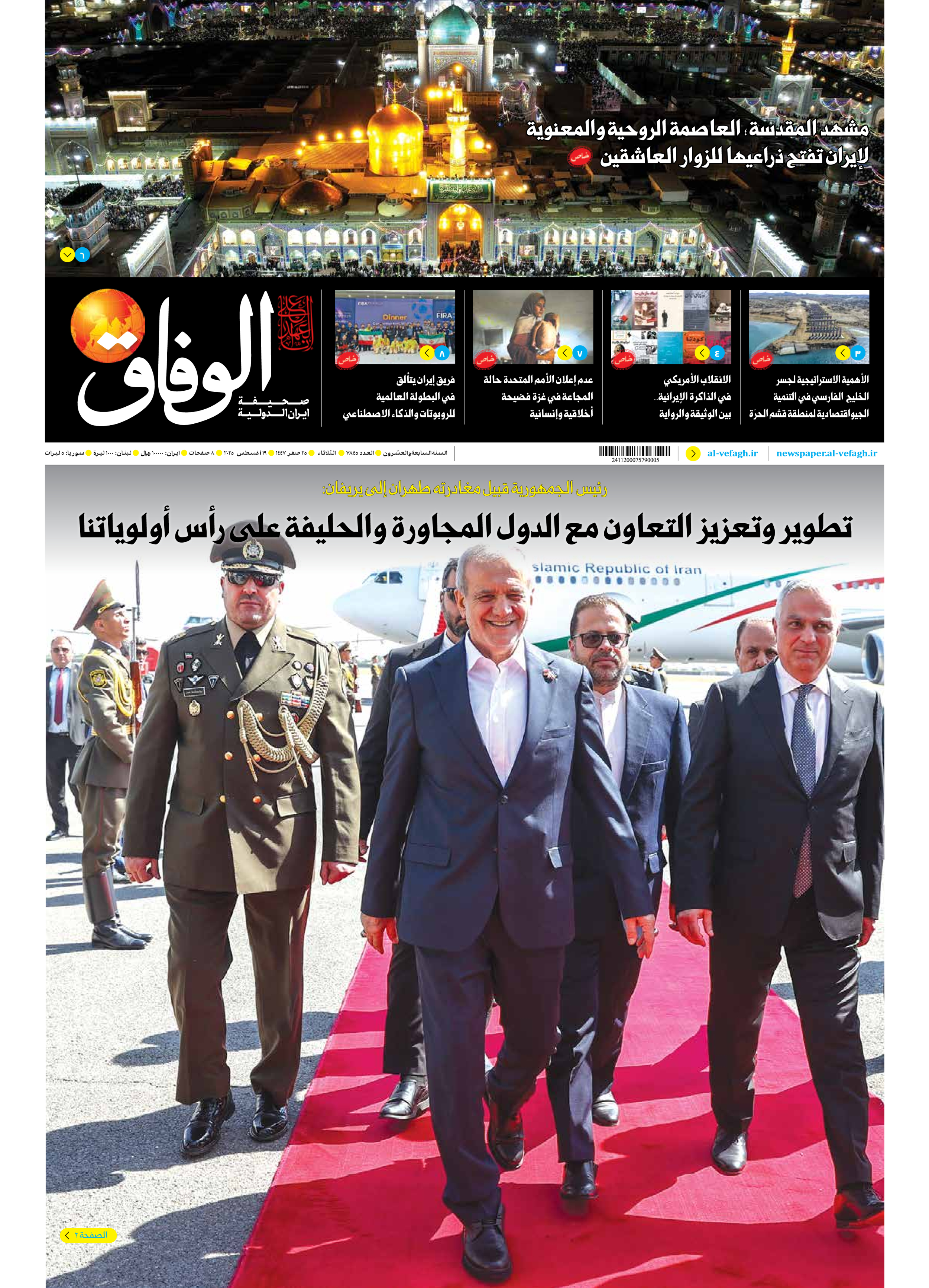صحیفة ایران الدولیة الوفاق - العدد سبعة آلاف وثمانمائة وخمسة وأربعون - ١٩ أغسطس ٢٠٢٥