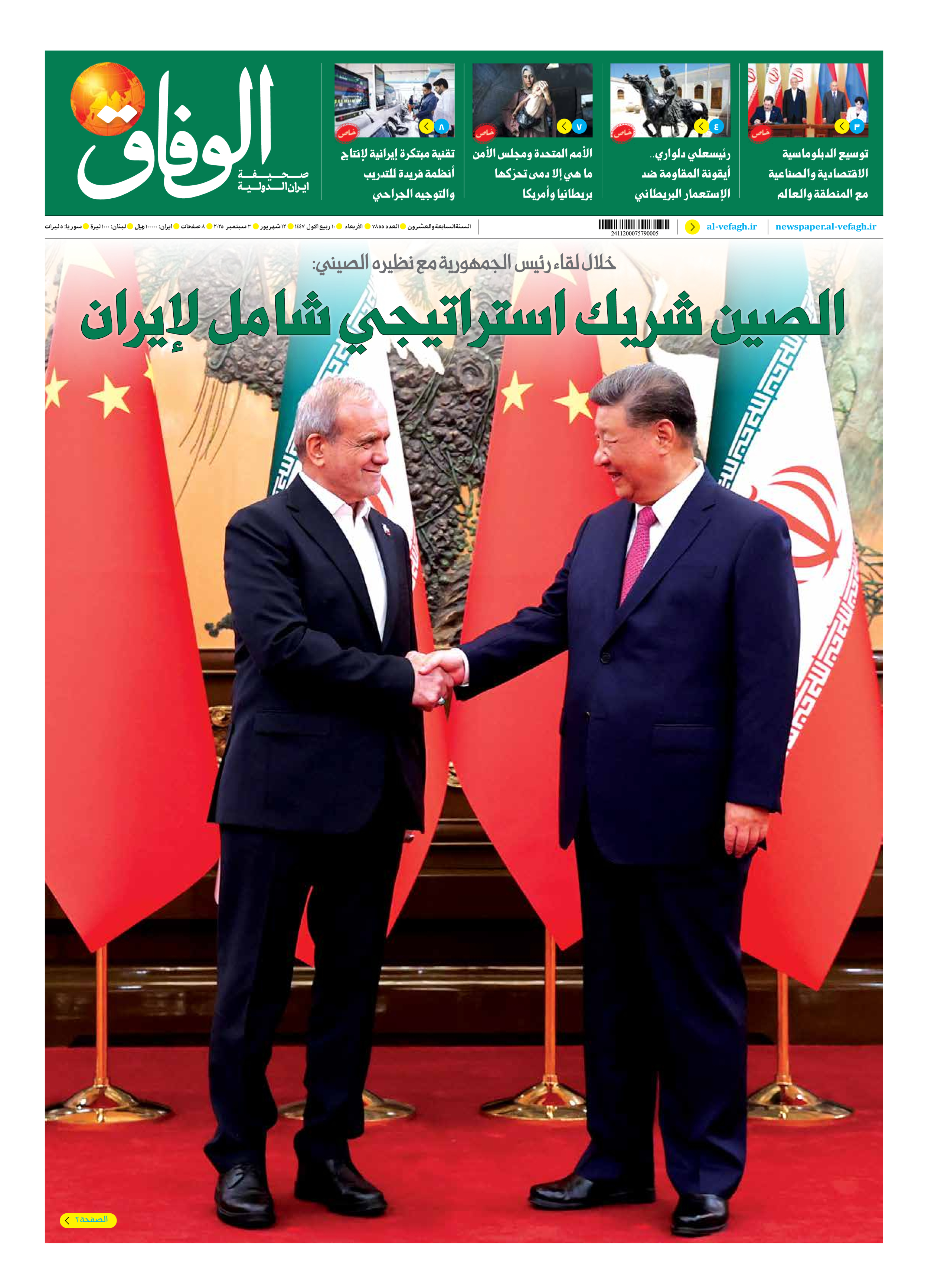 صحیفة ایران الدولیة الوفاق - العدد سبعة آلاف وثمانمائة وخمسة وخمسون - ٠٣ سبتمبر ٢٠٢٥