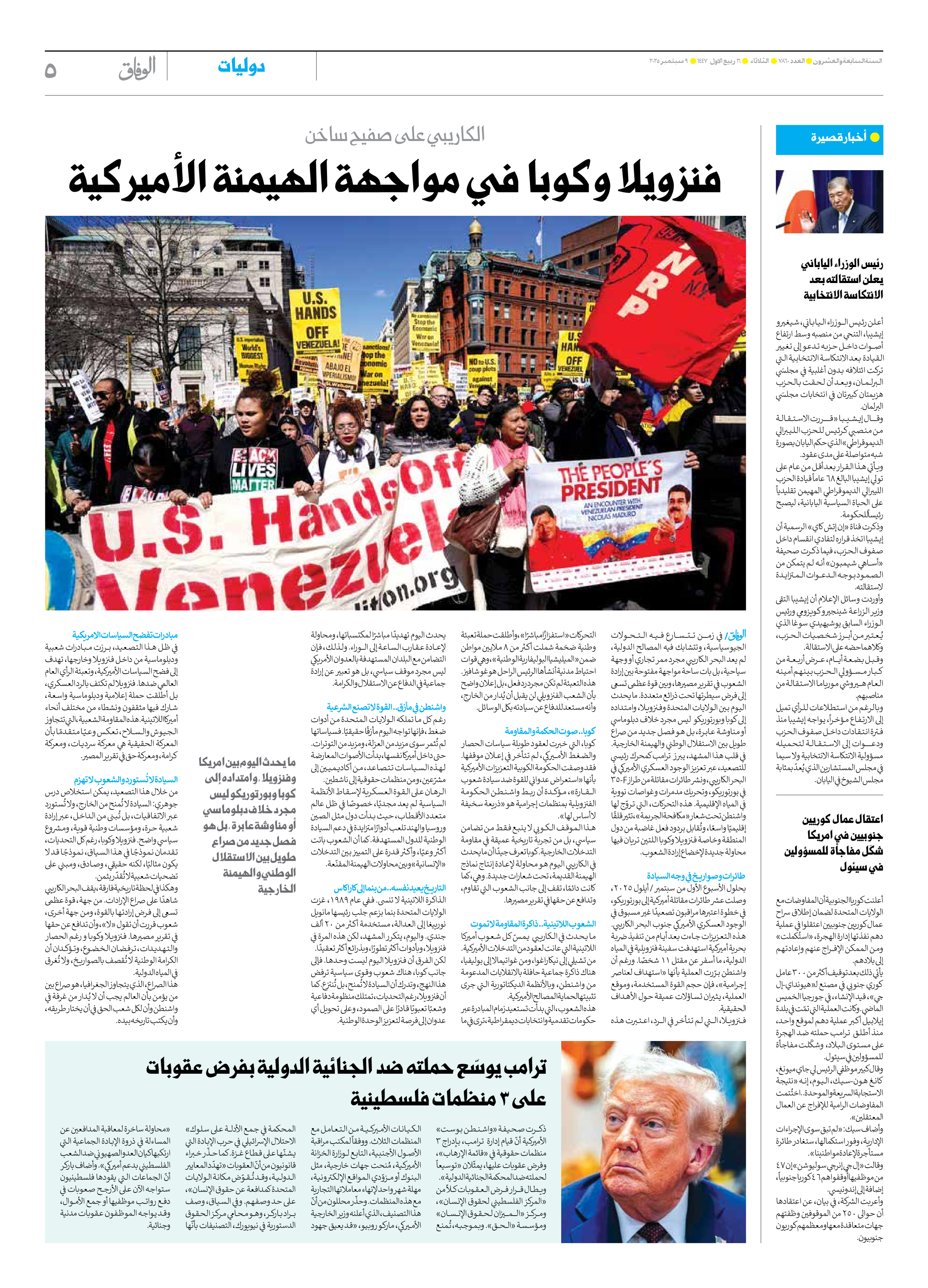 العدد سبعة آلاف وثمانمائة وستون - ٠٩ سبتمبر ٢٠٢٥