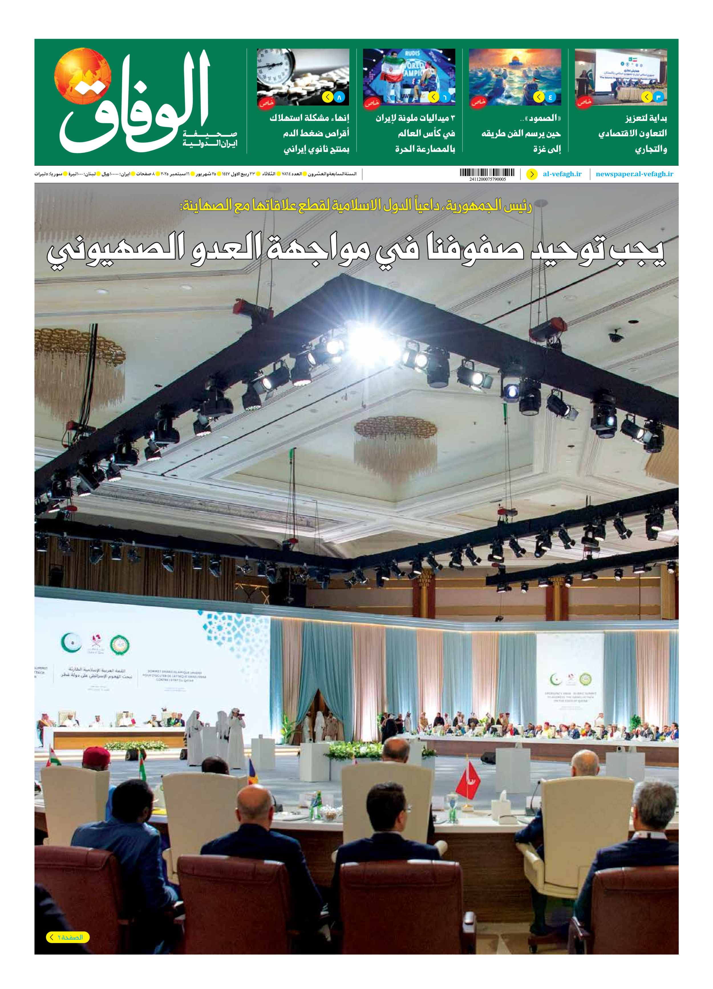 صحیفة ایران الدولیة الوفاق - العدد سبعة آلاف وثمانمائة وأربعة وستون - ١٦ سبتمبر ٢٠٢٥
