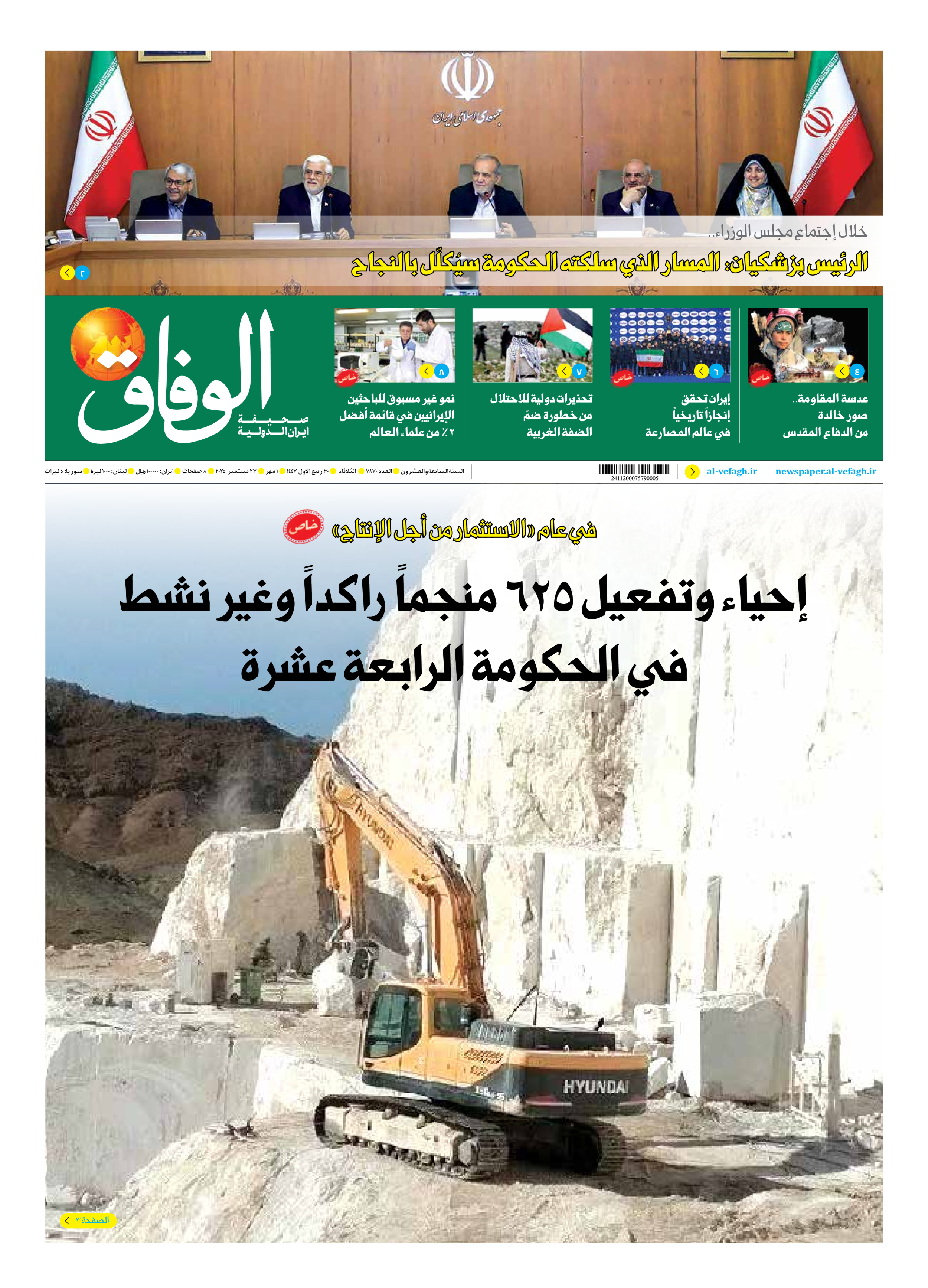صحیفة ایران الدولیة الوفاق - العدد سبعة آلاف وثمانمائة وسبعون - ٢٣ سبتمبر ٢٠٢٥