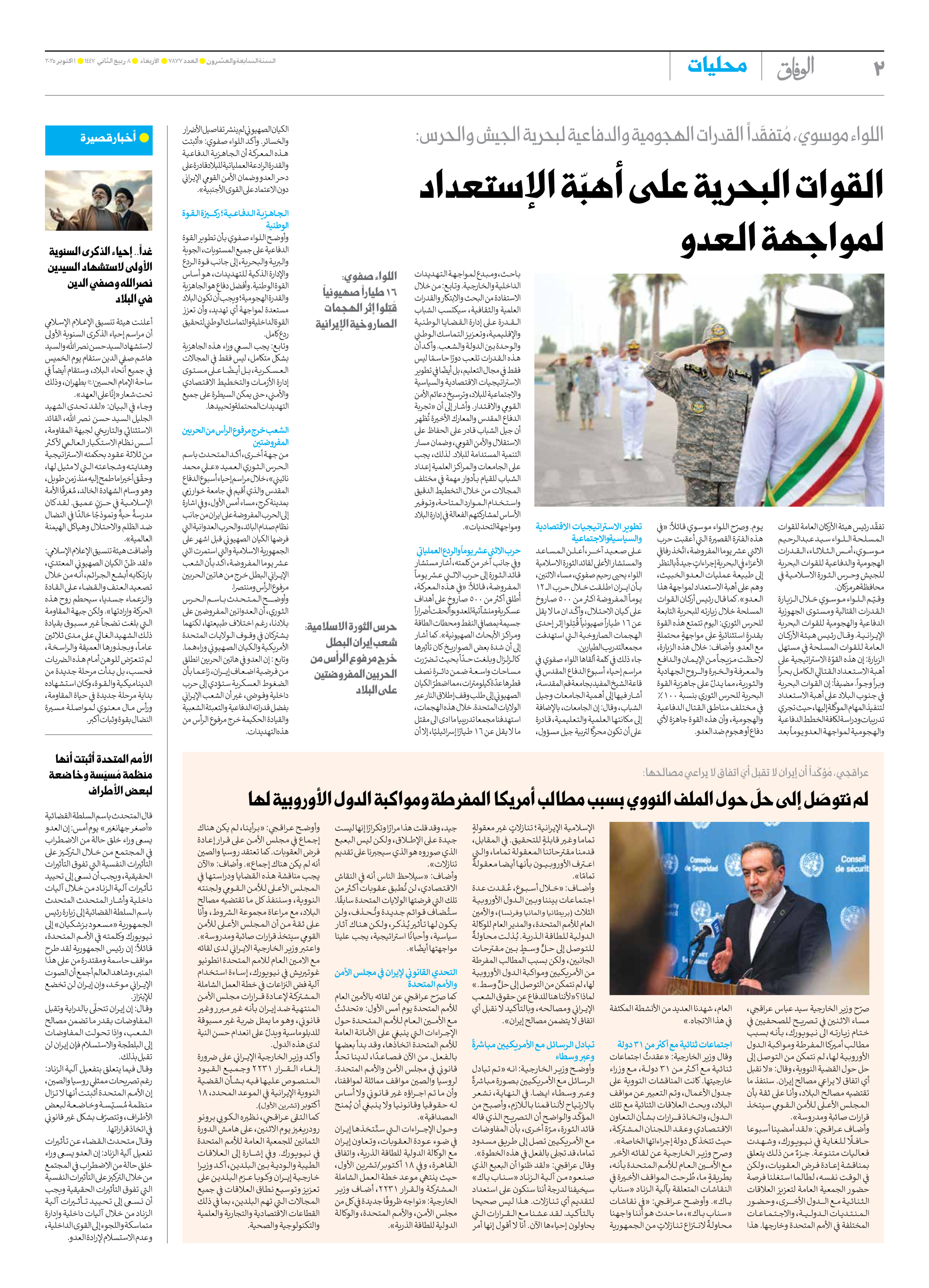 صحیفة ایران الدولیة الوفاق - العدد سبعة آلاف وثمانمائة وسبعة وسبعون - ٠١ أكتوبر ٢٠٢٥ - الصفحة ۲