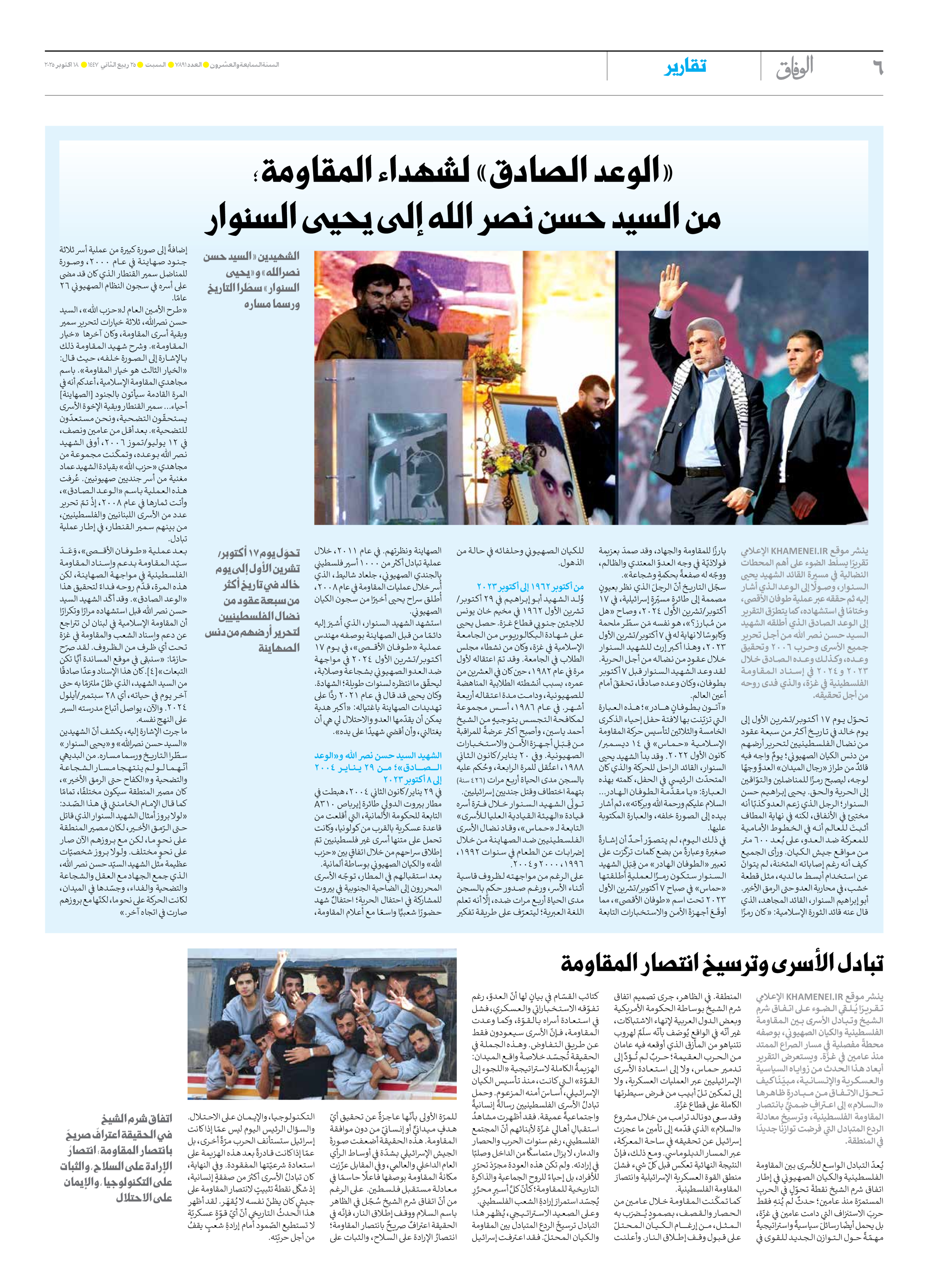 صحیفة ایران الدولیة الوفاق - العدد سبعة آلاف وثمانمائة وواحد وتسعون - ١٨ أكتوبر ٢٠٢٥ - الصفحة ٦