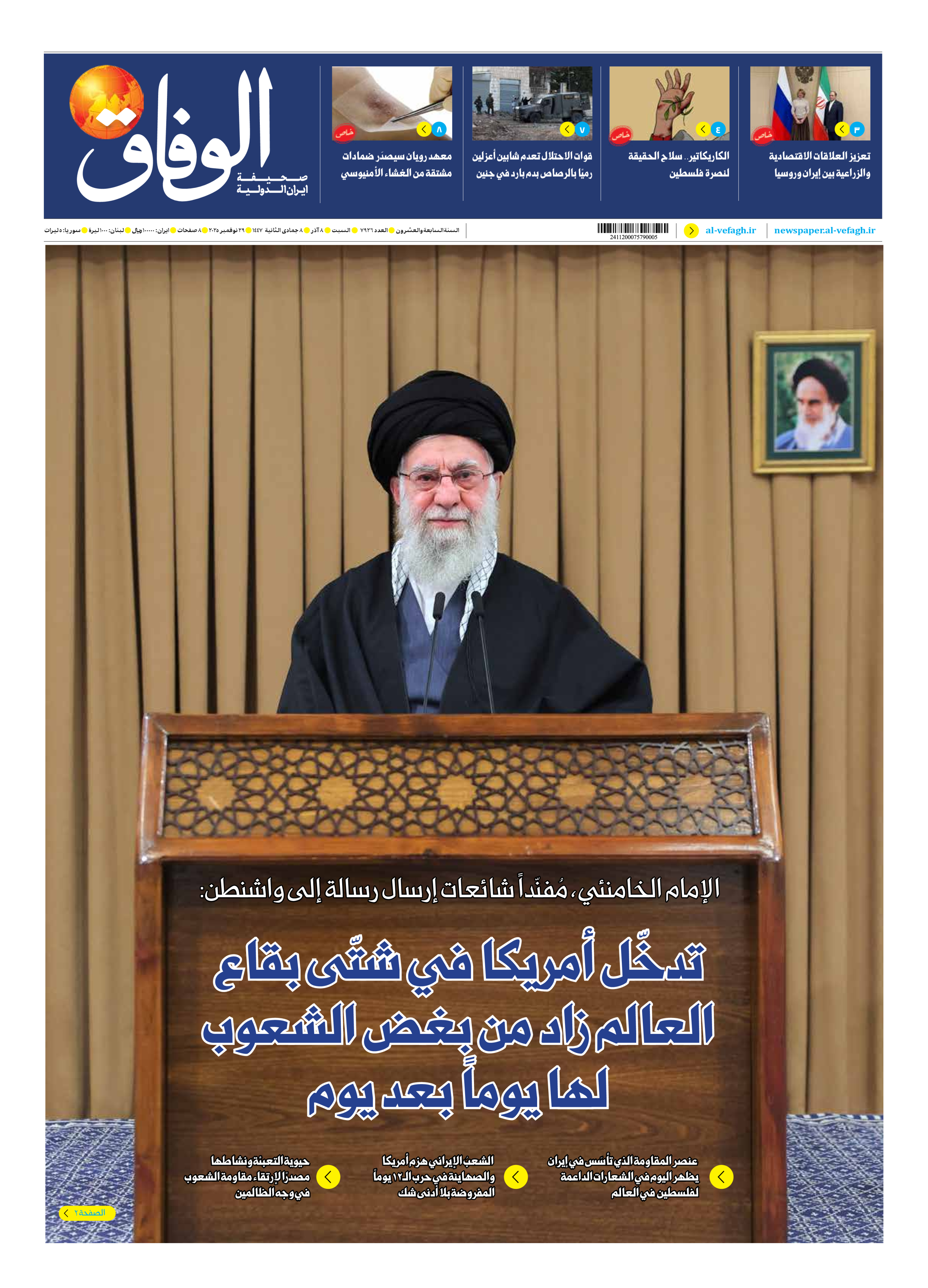 صحیفة ایران الدولیة الوفاق - العدد سبعة آلاف وتسعمائة وستة وعشرون - ٢٩ نوفمبر ٢٠٢٥