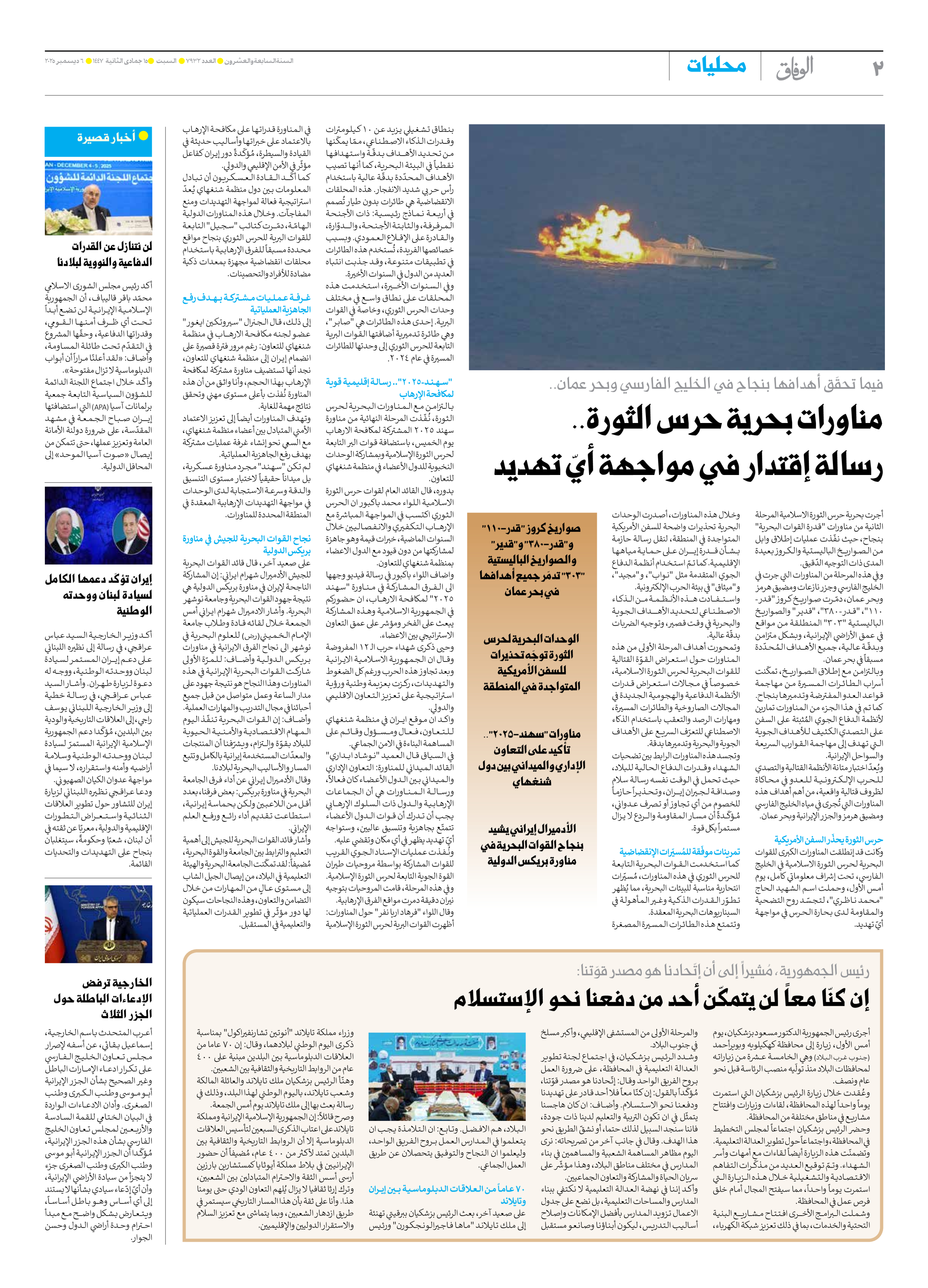 صحیفة ایران الدولیة الوفاق - العدد سبعة آلاف وتسعمائة واثنان وثلاثون - ٠٦ ديسمبر ٢٠٢٥ - الصفحة ۲