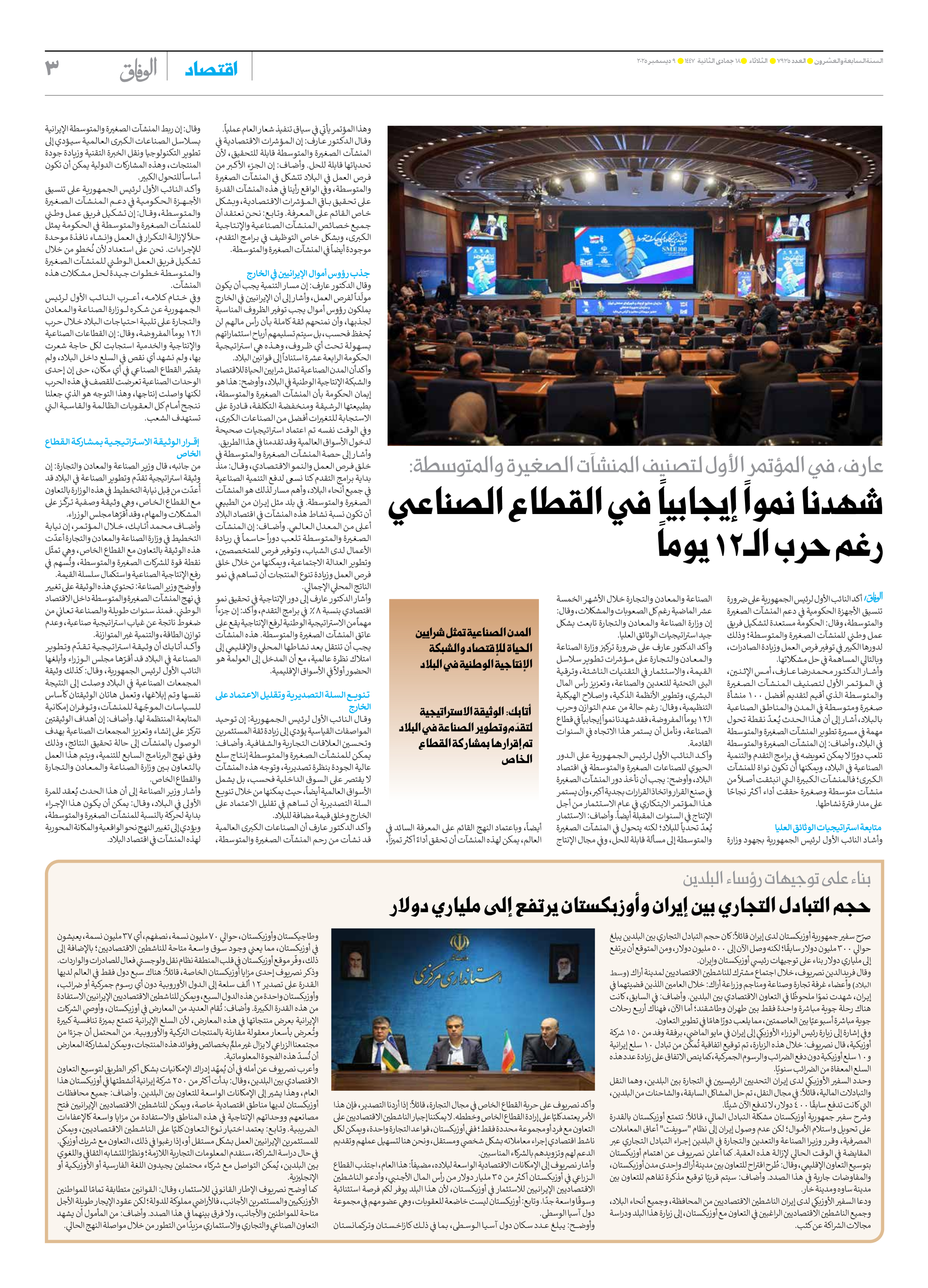 صحیفة ایران الدولیة الوفاق - العدد سبعة آلاف وتسعمائة وخمسة وثلاثون - ٠٩ ديسمبر ٢٠٢٥ - الصفحة ۳