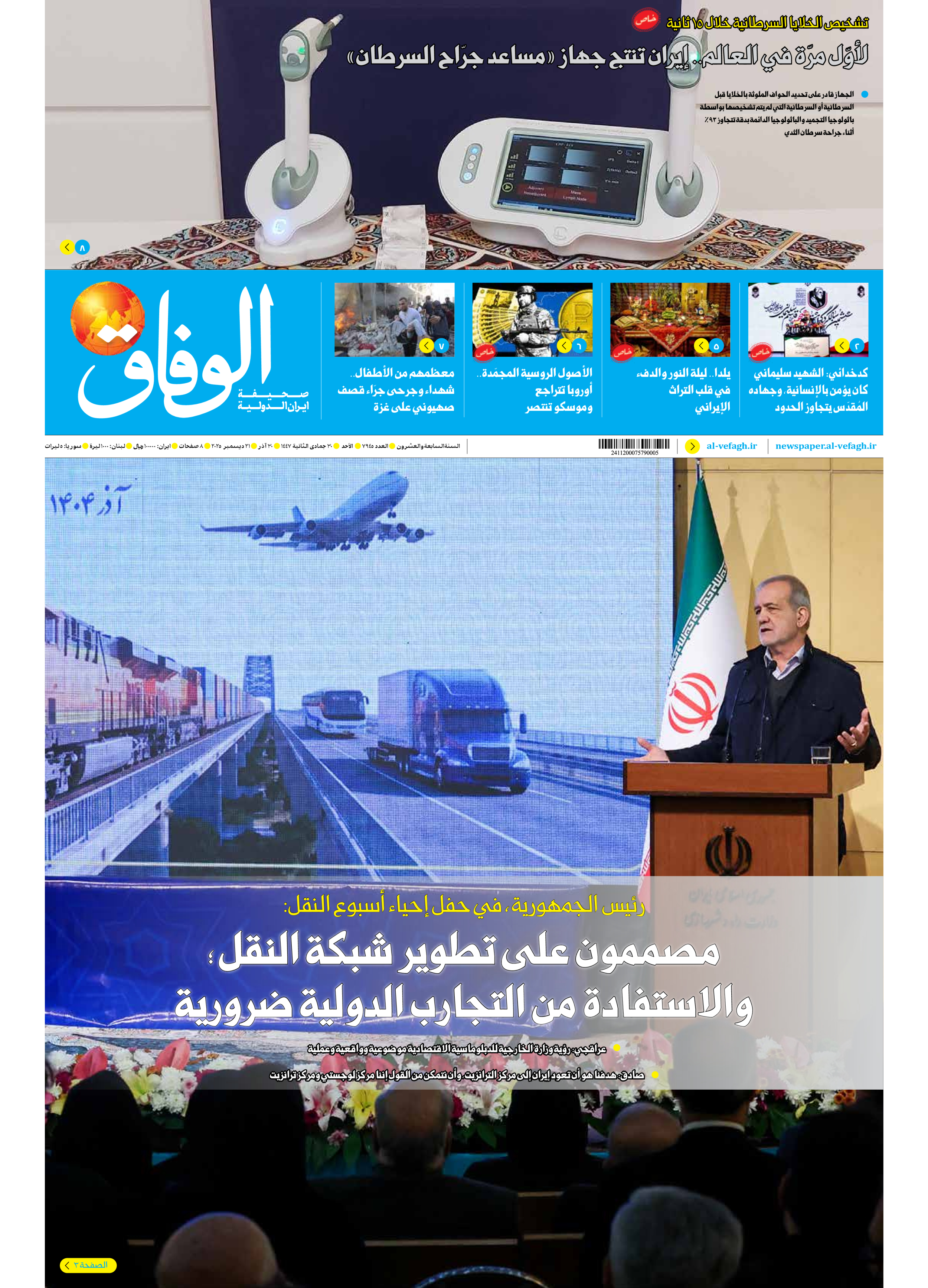 صحیفة ایران الدولیة الوفاق - العدد سبعة آلاف وتسعمائة وخمسة وأربعون - ٢١ ديسمبر ٢٠٢٥