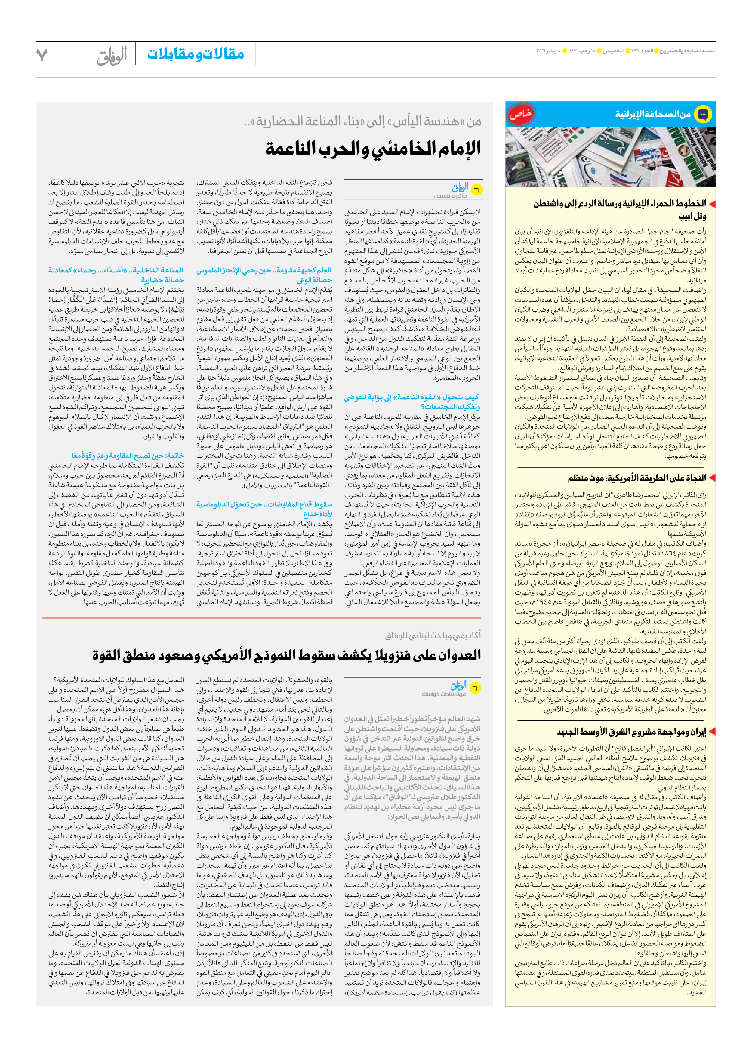العدد سبعة آلاف وتسعمائة وستون - ٠٨ يناير ٢٠٢٦