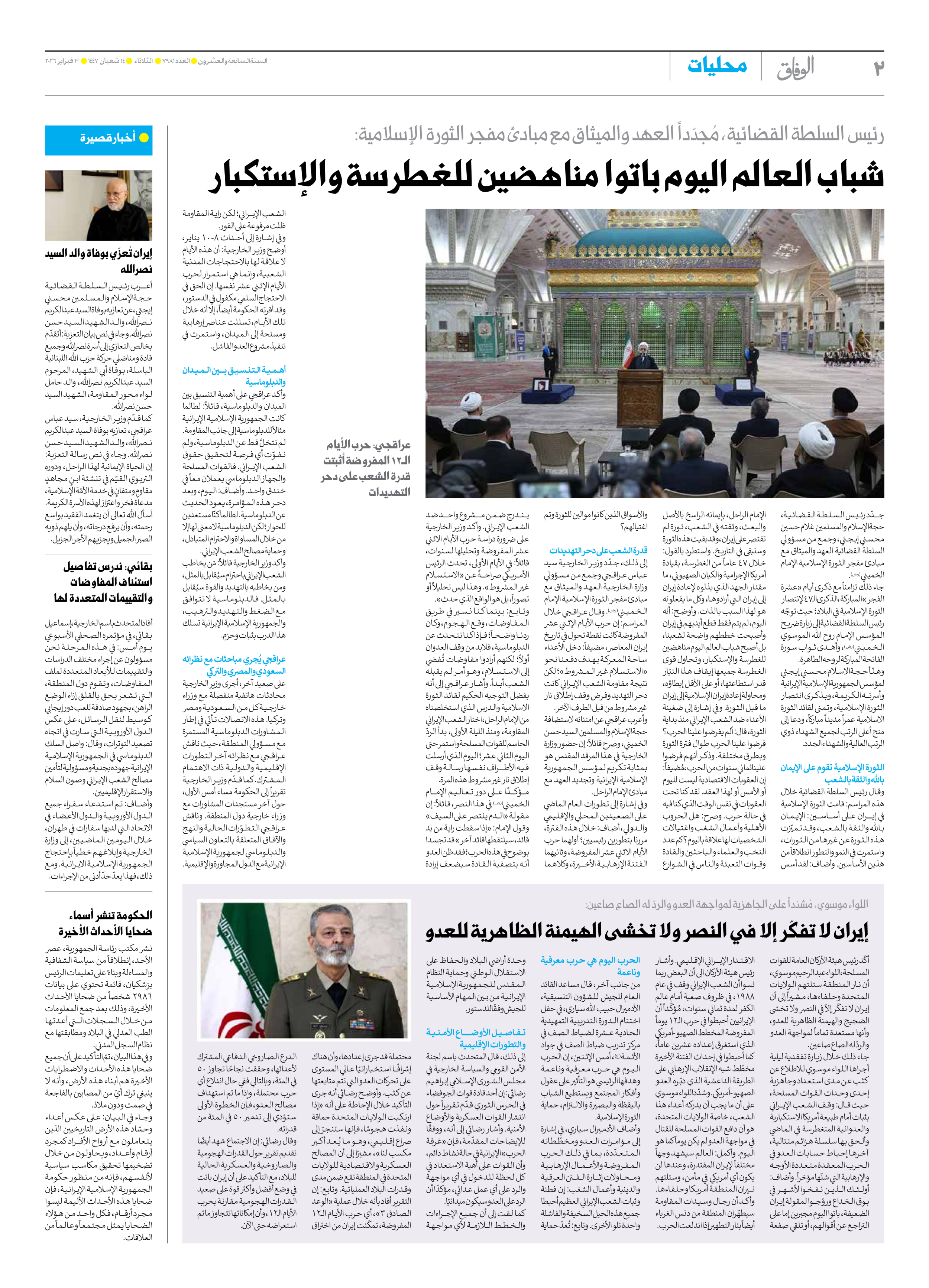 صحیفة ایران الدولیة الوفاق - العدد سبعة آلاف وتسعمائة وواحد وثمانون - ٠٣ فبراير ٢٠٢٦ - الصفحة ۲