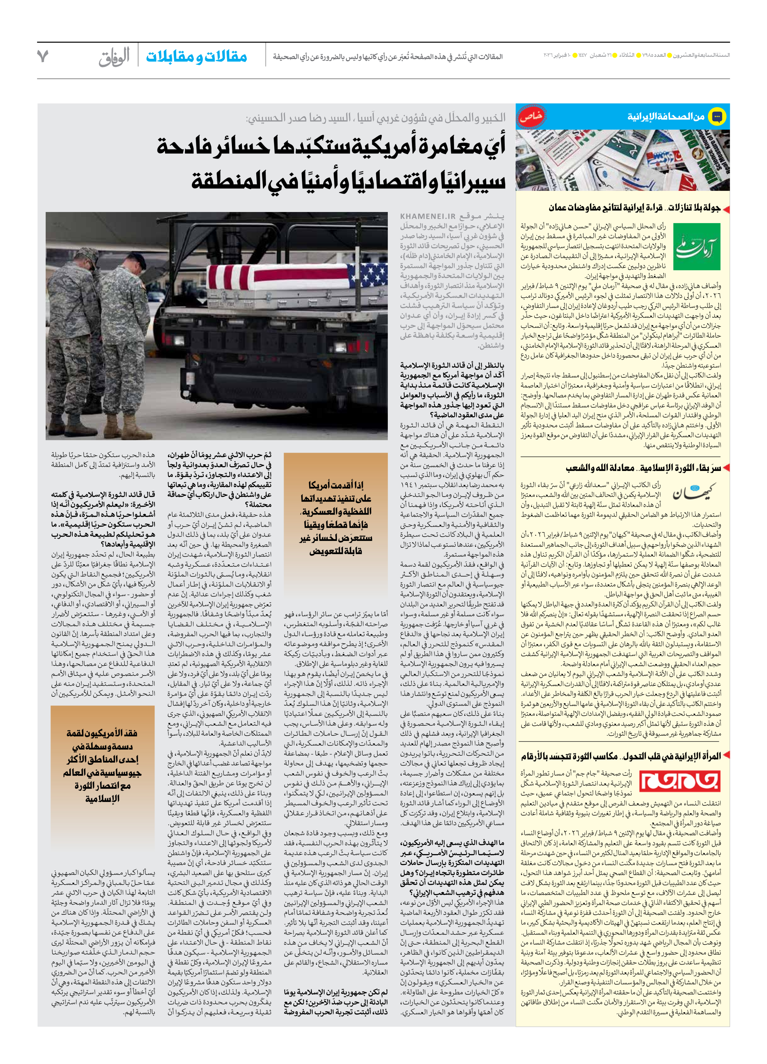 صحیفة ایران الدولیة الوفاق - العدد سبعة آلاف وتسعمائة وخمسة وثمانون - ١٠ فبراير ٢٠٢٦ - الصفحة ۷