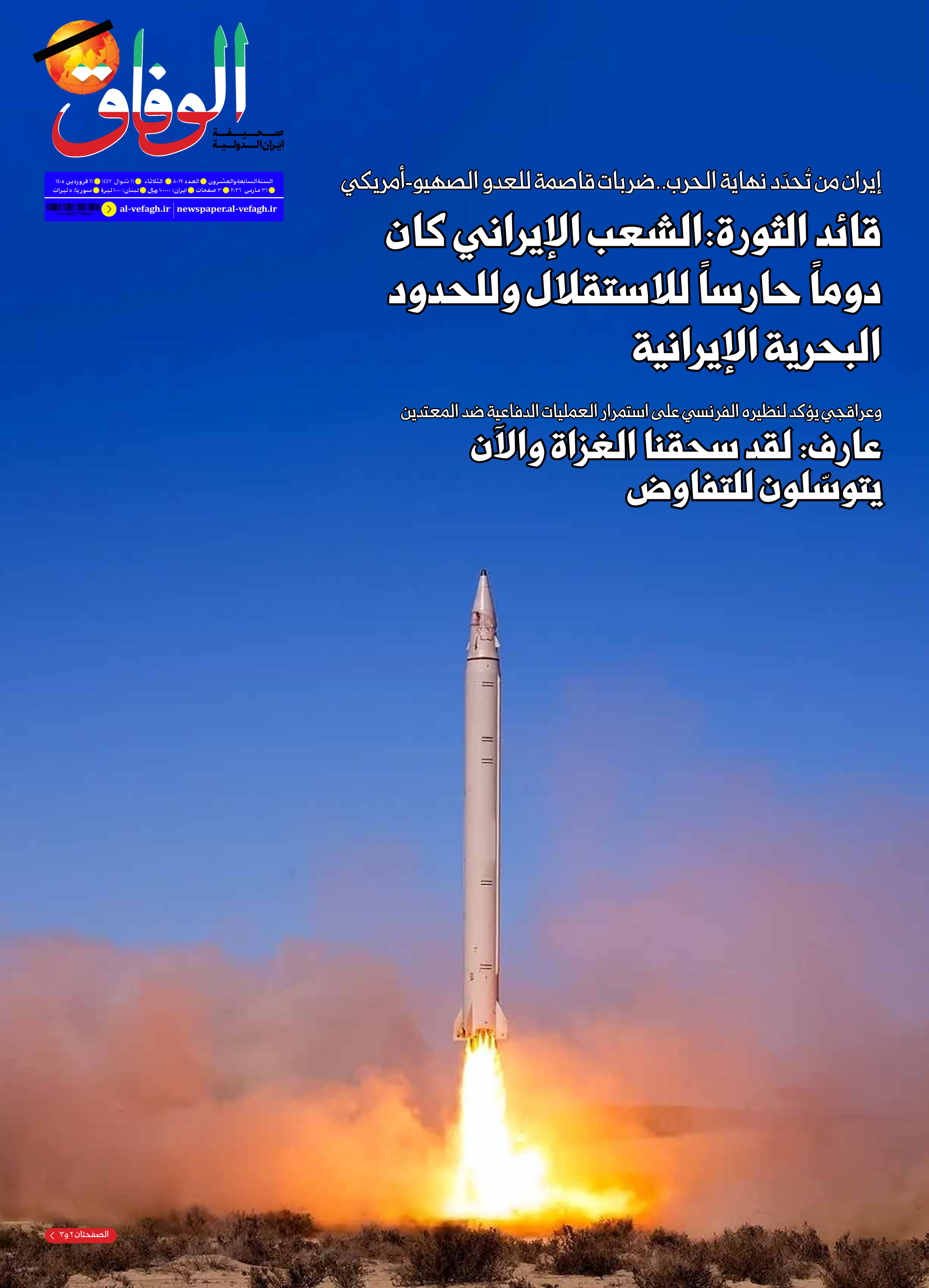 صحیفة ایران الدولیة الوفاق - العدد ثمانية آلاف وتسعة عشر - ٣١ مارس ٢٠٢٦
