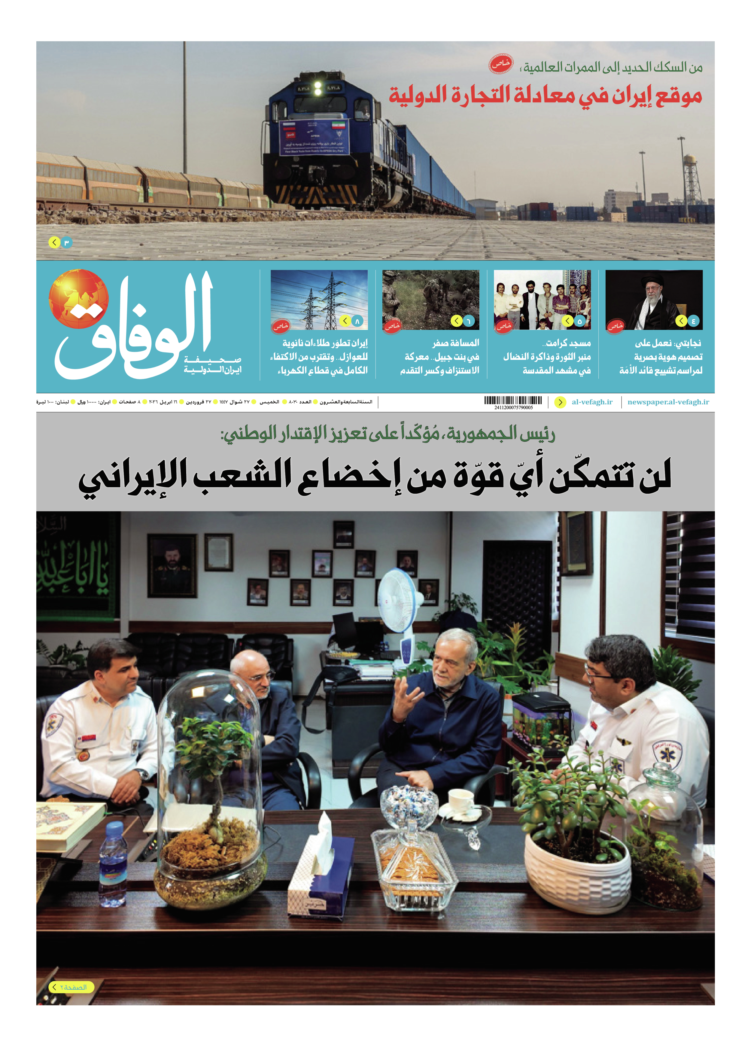 صحیفة ایران الدولیة الوفاق - العدد ثمانية آلاف وثلاثون - ١٦ أبريل ٢٠٢٦
