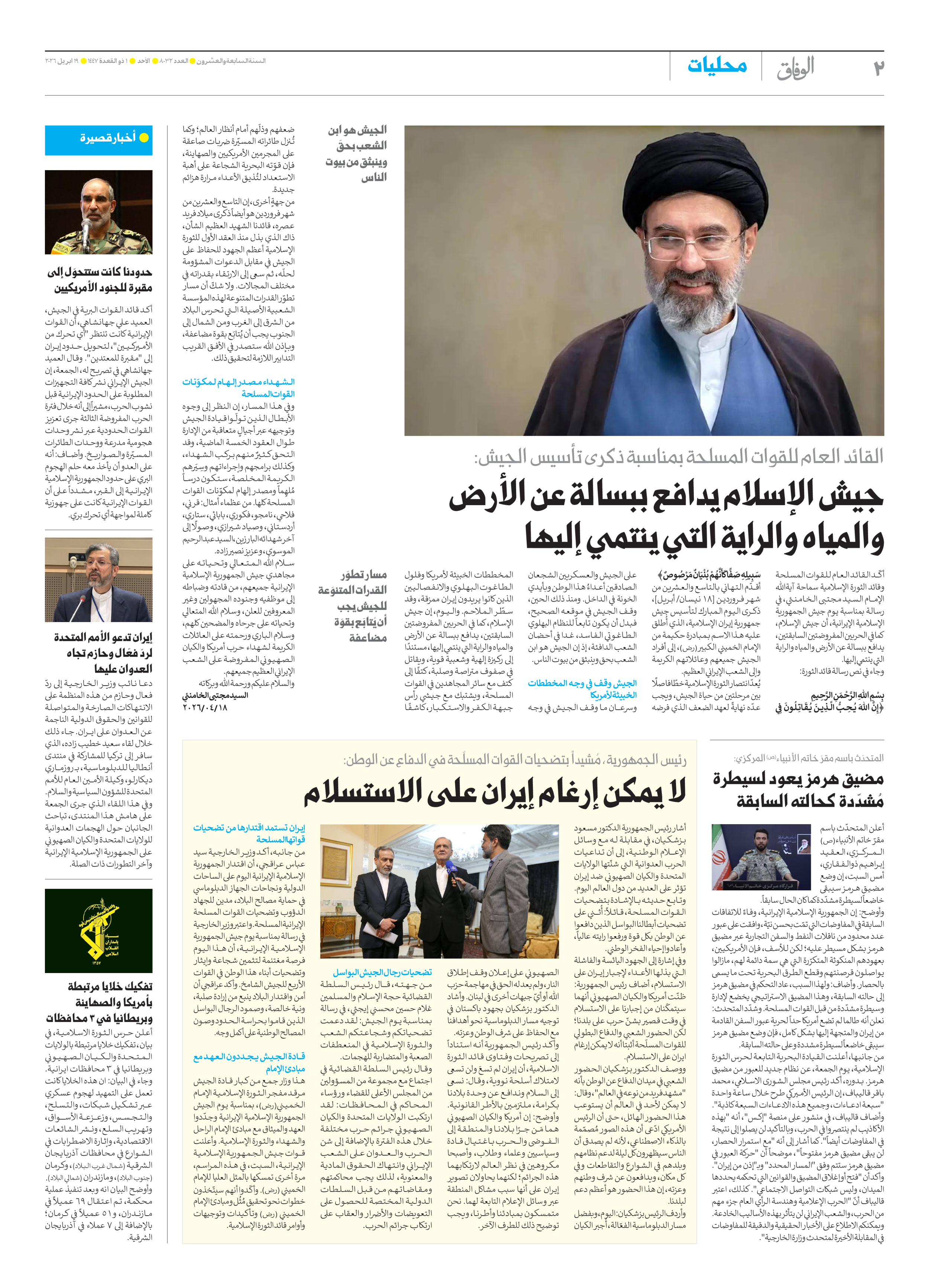 صحیفة ایران الدولیة الوفاق - العدد ثمانية آلاف واثنان وثلاثون - ١٩ أبريل ٢٠٢٦ - الصفحة ۲